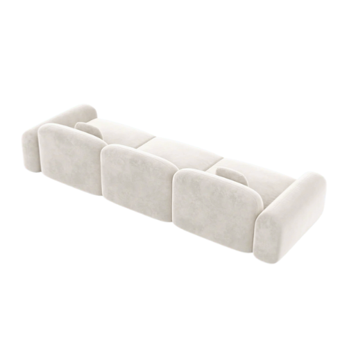 Le canapé 3 places en velours crème Buccana est une pièce élégante et confortable, idéale pour apporter une touche sophistiquée à votre intérieur tout en offrant un espace d'assise accueillant.