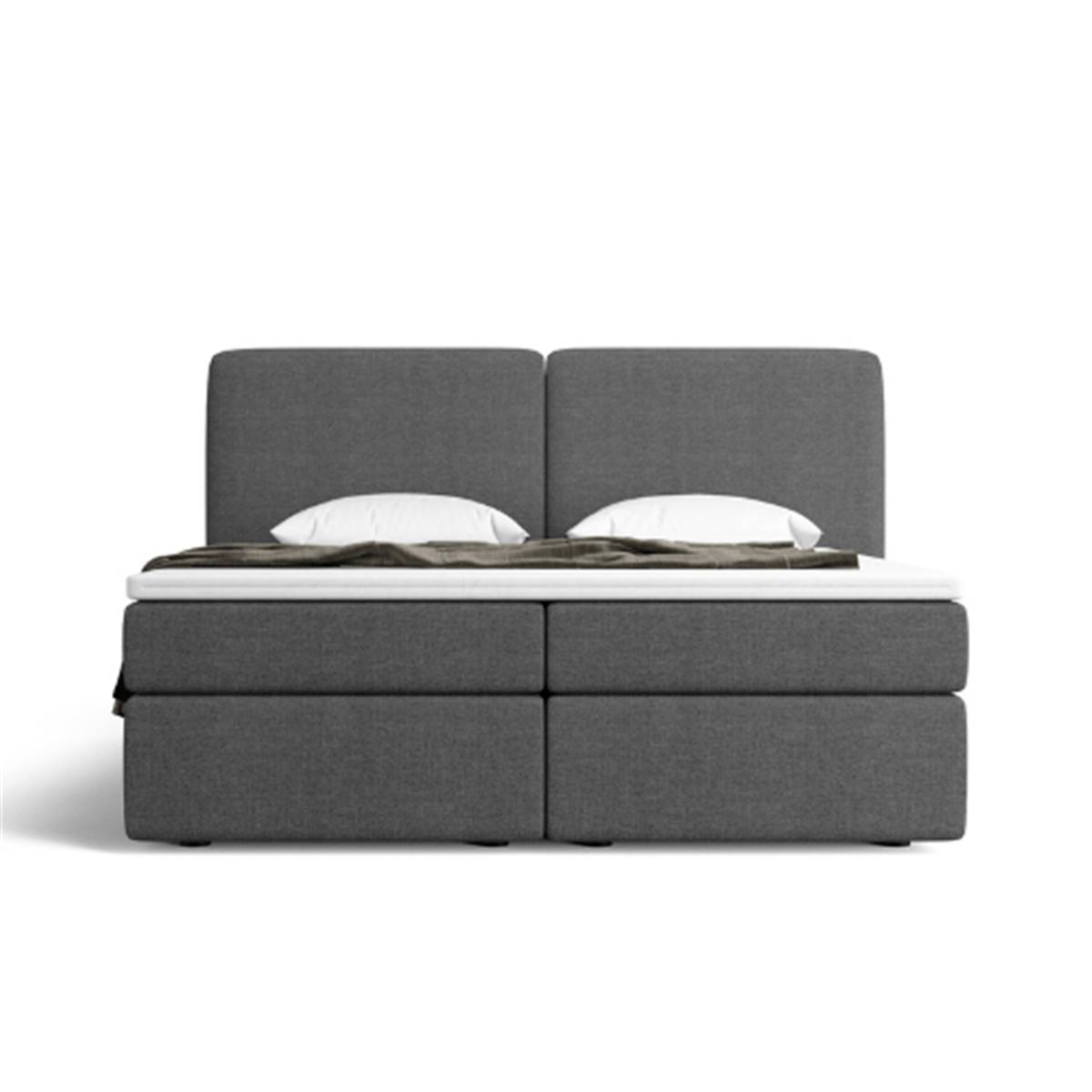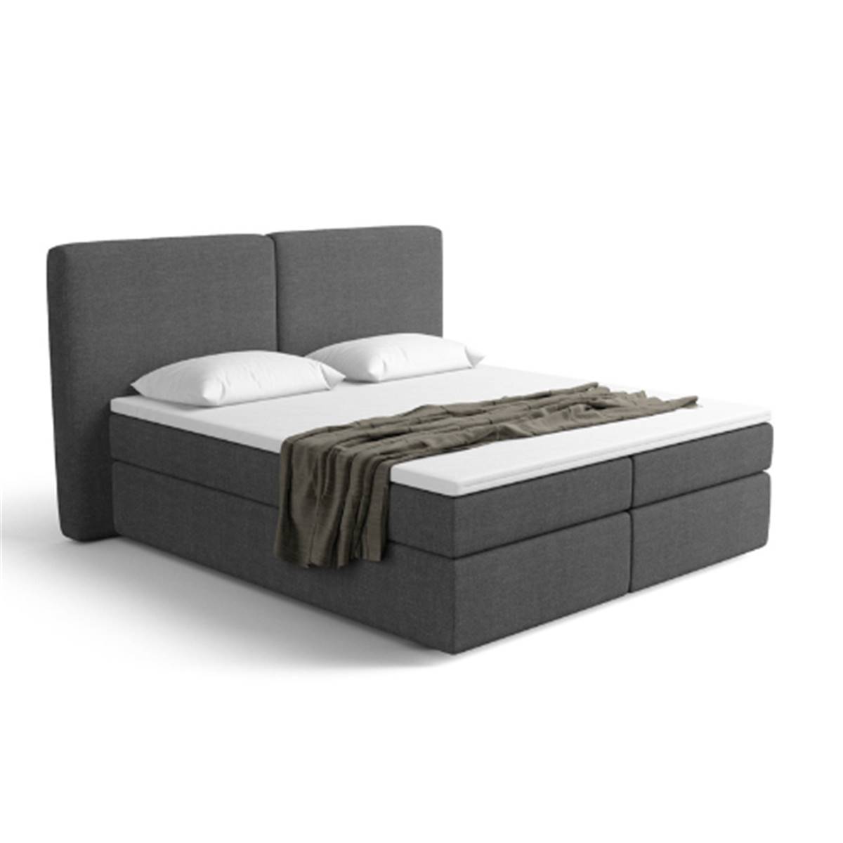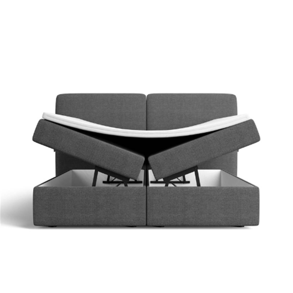 Bolabi lit boxspring 160x200 en tissu texturé gris anthracite avec rangement