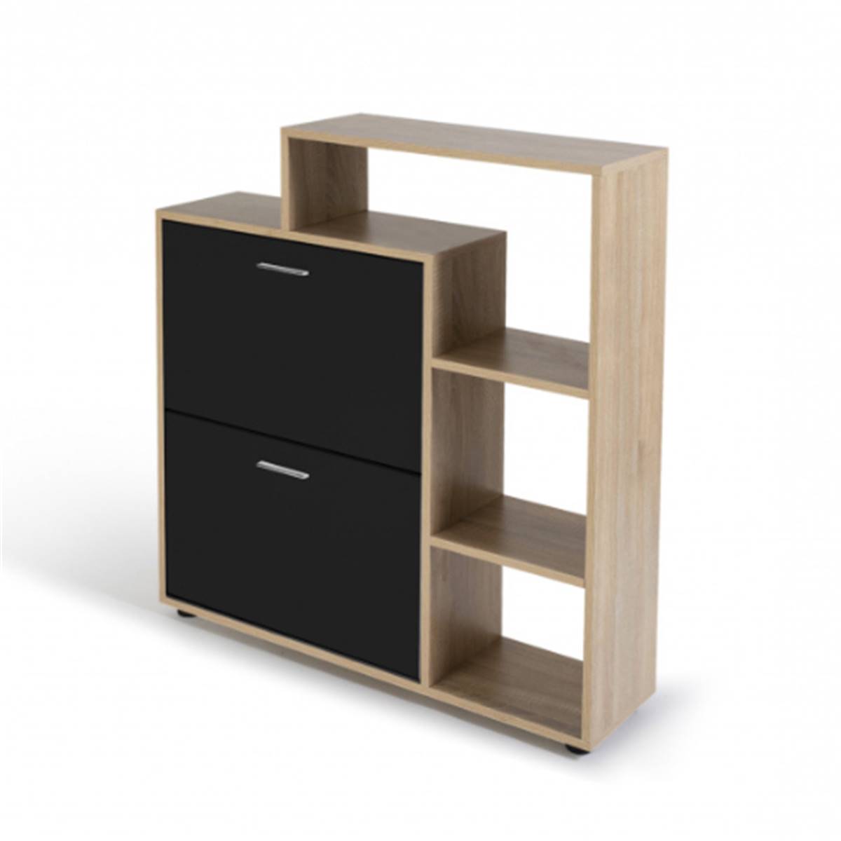 Hanae meuble à chaussures 2 portes noires et étagères latérales
