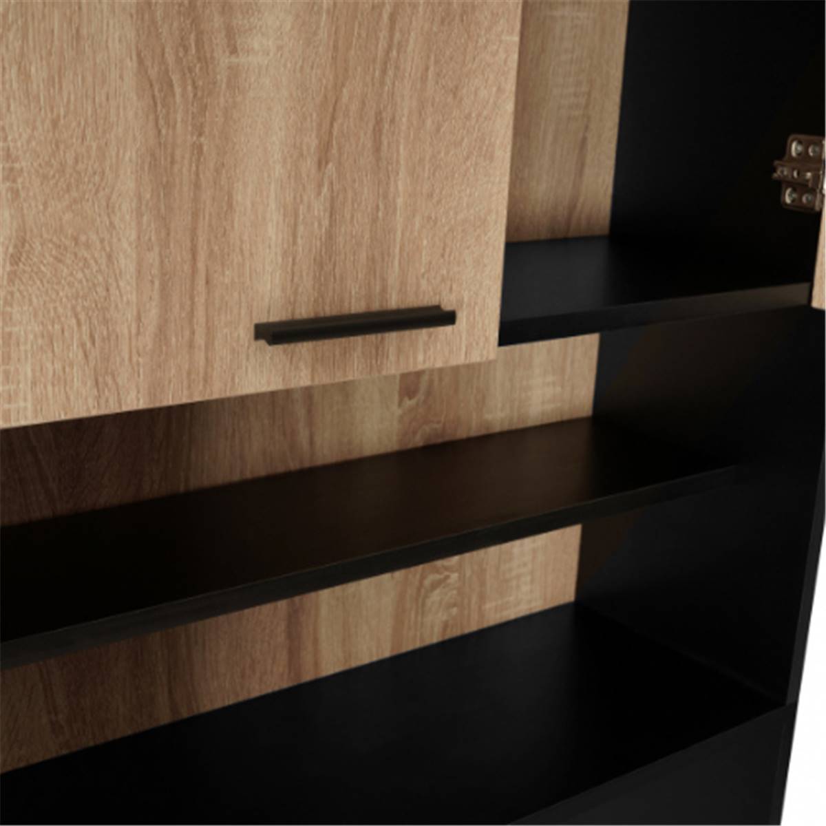 Le meuble dessus de machine à laver 2 portes bois et noir Dora est une solution astucieuse pour optimiser l’espace de votre buanderie ou salle de bain.