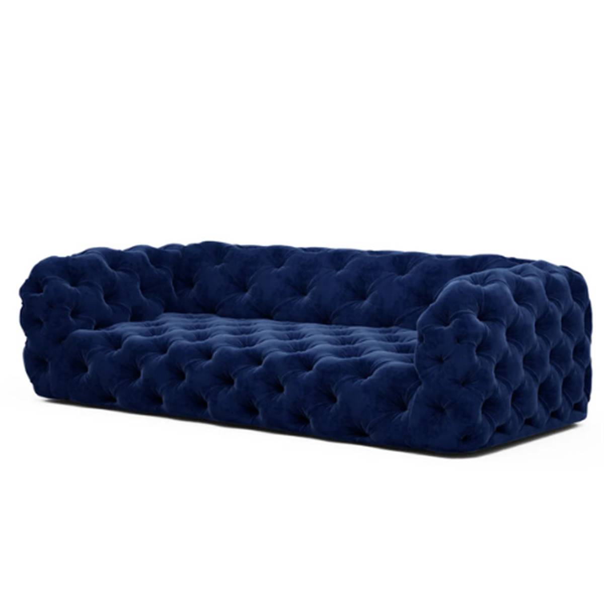 Le canapé 4 places Layor en velours capitonné bleu foncé mêle allure classique et charme contemporain. Son revêtement profond et ses finitions soignées comme le capitonnage lui donnent un caractère sophistiqué, idéal pour sublimer votre salon.