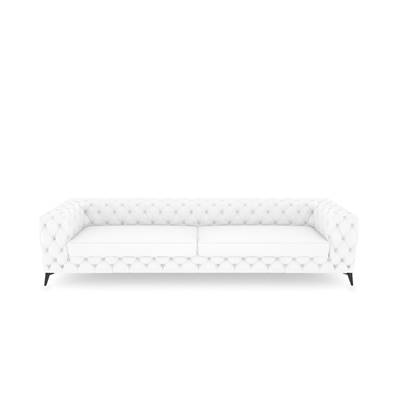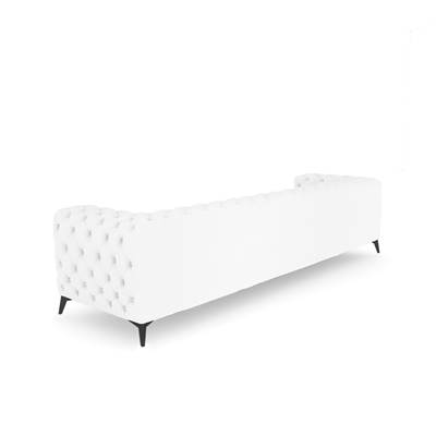 Le canapé 3 places Bali en cuir blanc capitonné et pieds noirs est un modèle alliant élégance et confort. Son revêtement en polyuréthane offre un toucher agréable et une finition capitonnée sophistiquée. Son assise généreusement rembourrée et sa structure robuste en bois assurent une excellente durabilité et un soutien optimal.