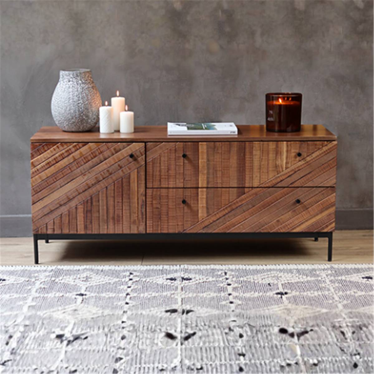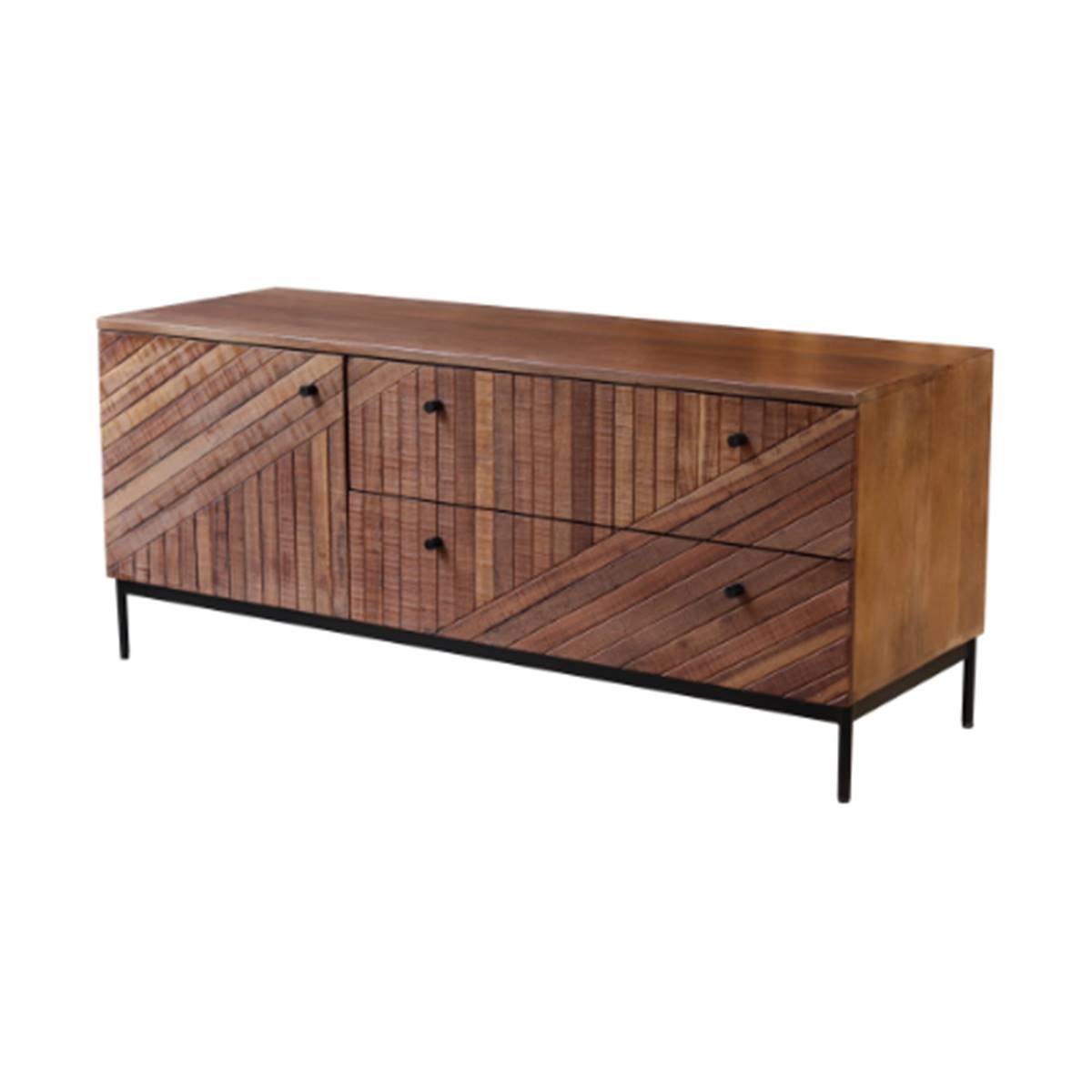 Maize meuble TV 1 porte 2 tiroirs en bois recyclé et métal