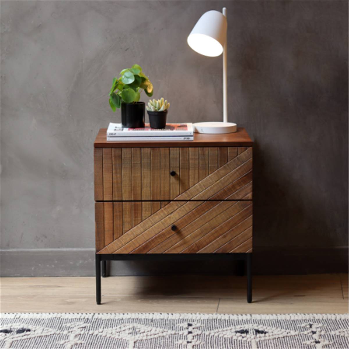 Maize table de chevet 2 tiroirs en bois recyclé et métal