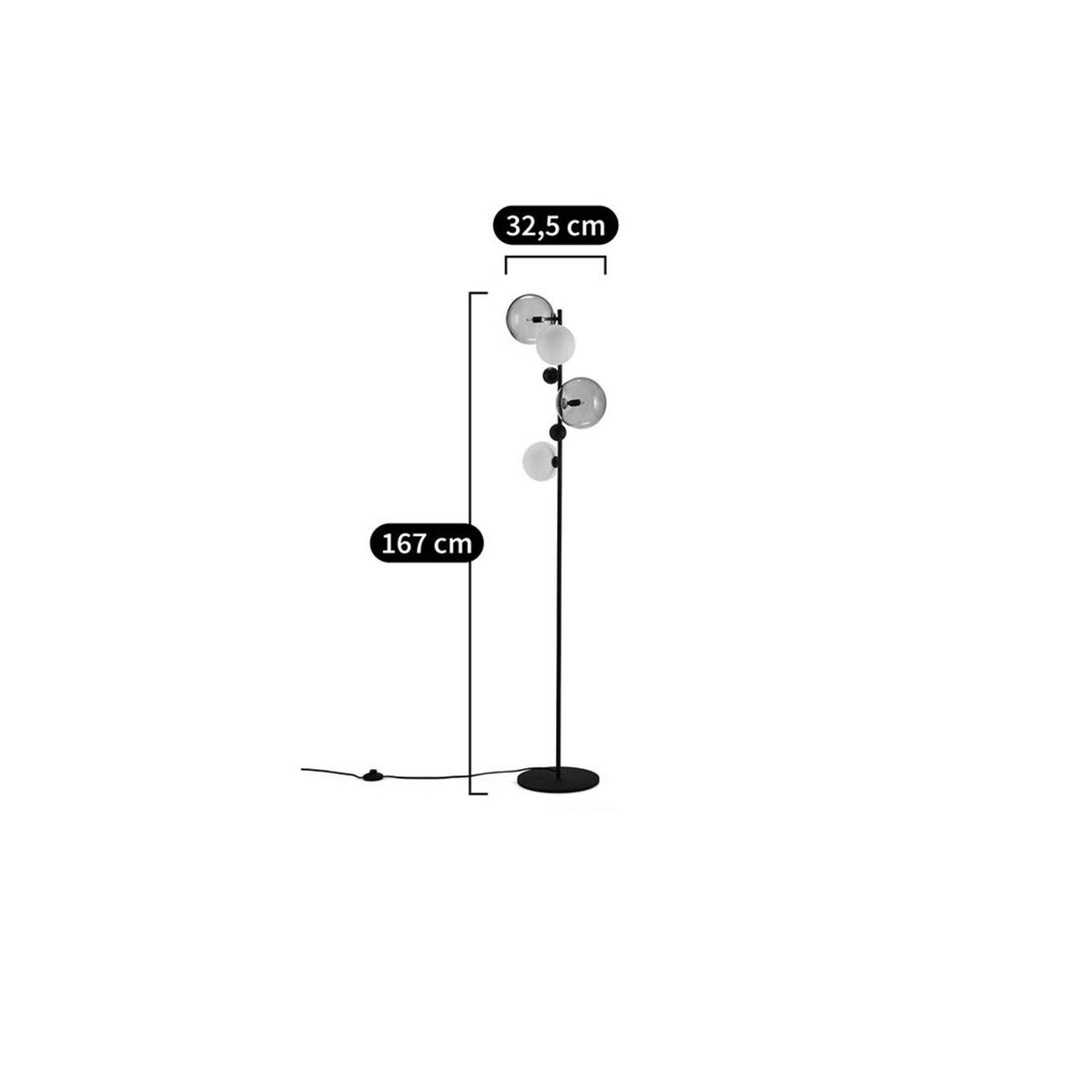 Globus lampadaire verre fumé et métal
