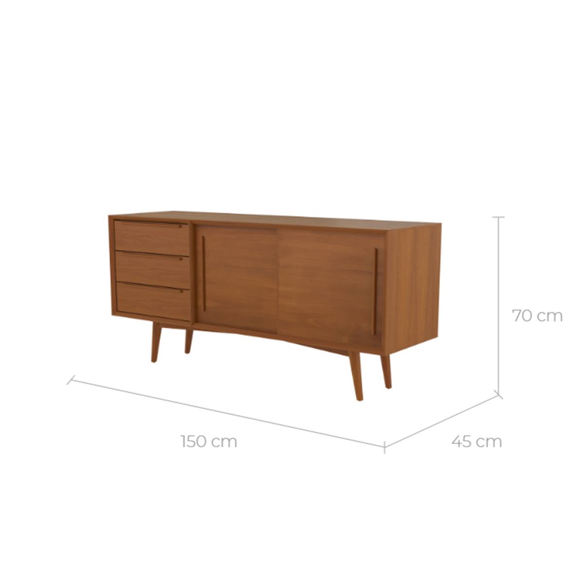 Ce buffet en teck massif apporte une touche d’authenticité et de naturel à votre espace tout en proposant une grande capacité de rangement grâce à ses tiroirs et portes coulissantes. Polyvalent et robuste, il trouvera facilement sa place dans différents styles d'intérieur.