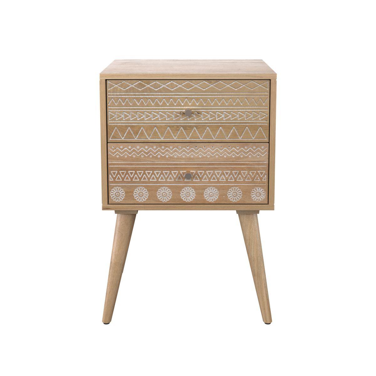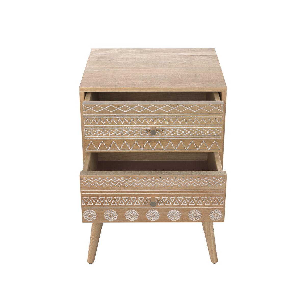 Maeva table de chevet en bois de manguier gravée 2 tiroirs