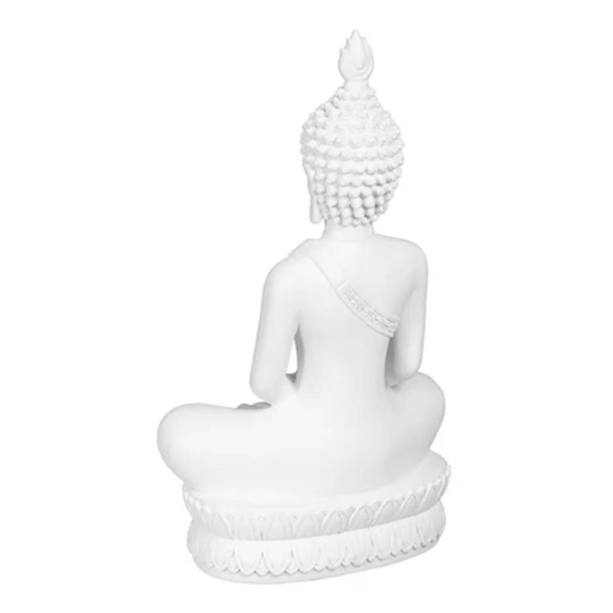 Figure décorative Bouddha en polyresin, finition blanche, idéale pour créer une ambiance zen et apaisante dans votre intérieur. Dimensions : 24 × 14,2 × 41 cm. Poids : 1 kg.