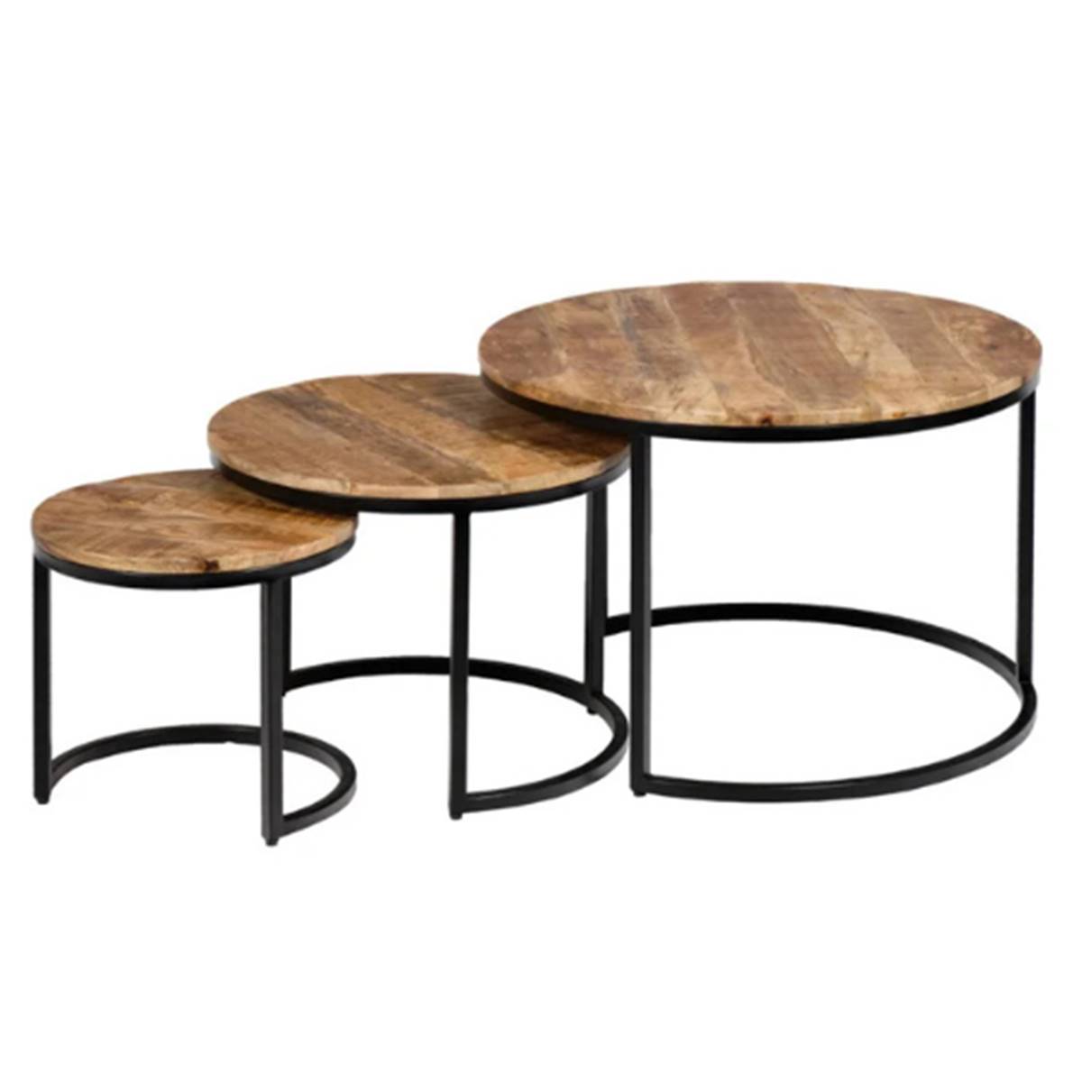 Phoenix lot de 3 tables basses gigognes rondes bois de manguier naturel et métal