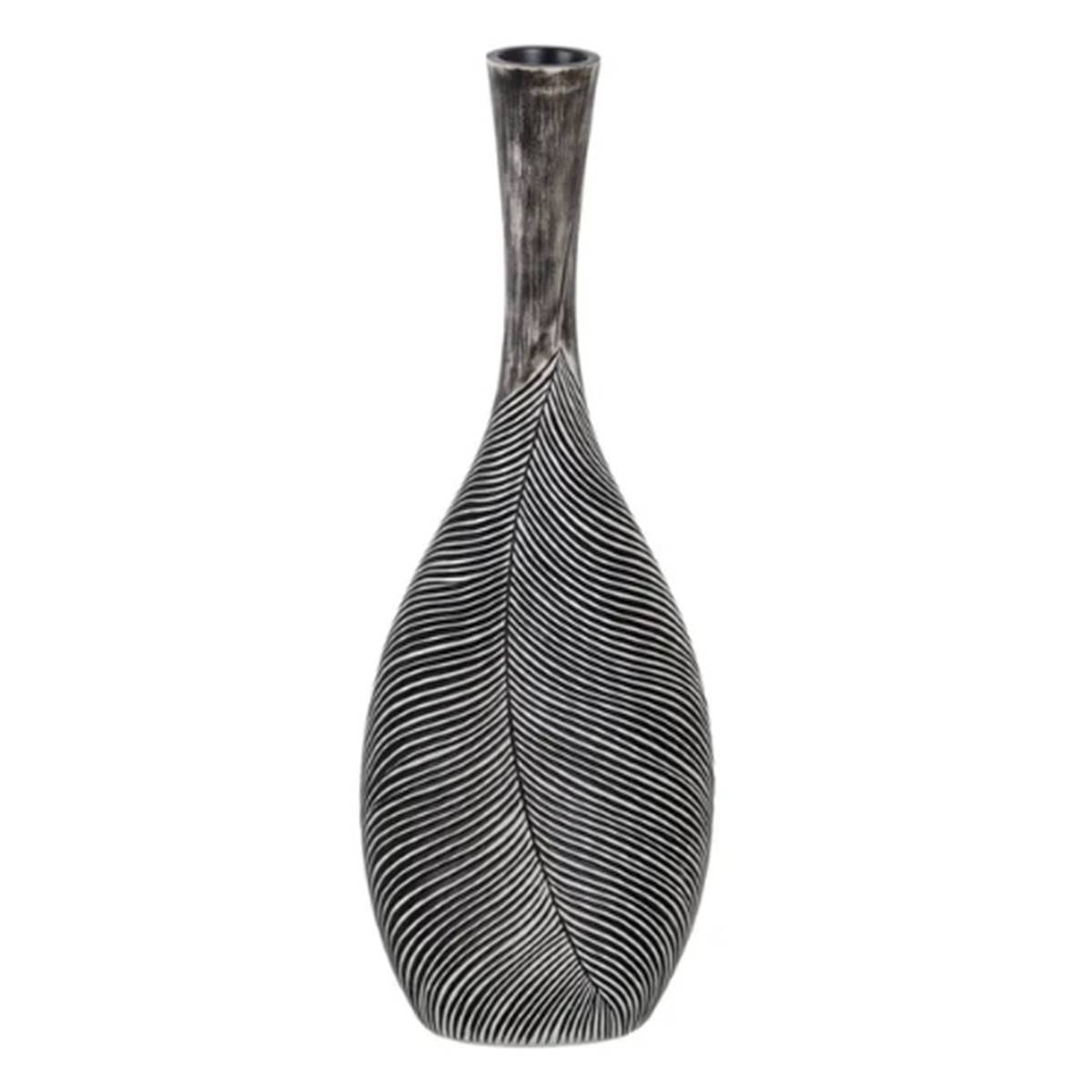 Axelle vase noir et blanc polyuresin L, idéal pour apporter une touche moderne et élancée à votre décoration. Dimensions : 24 × 12,5 × 68 cm. Poids : 2,5 kg.