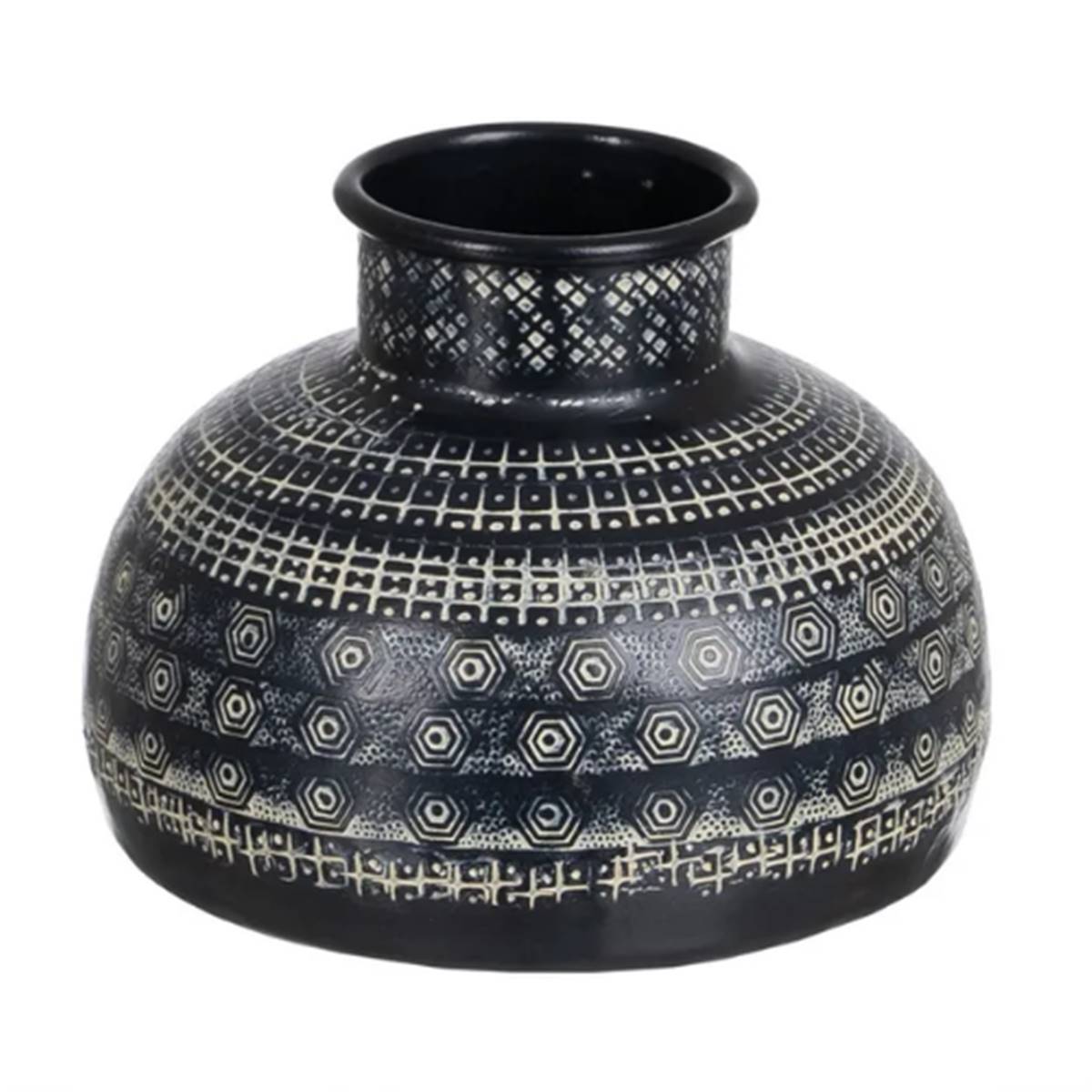 André vase en aluminium finition noire, compact et moderne, idéal pour compléter une décoration contemporaine. Dimensions : 15 × 15 × 13 cm. Poids : 0,4 kg.