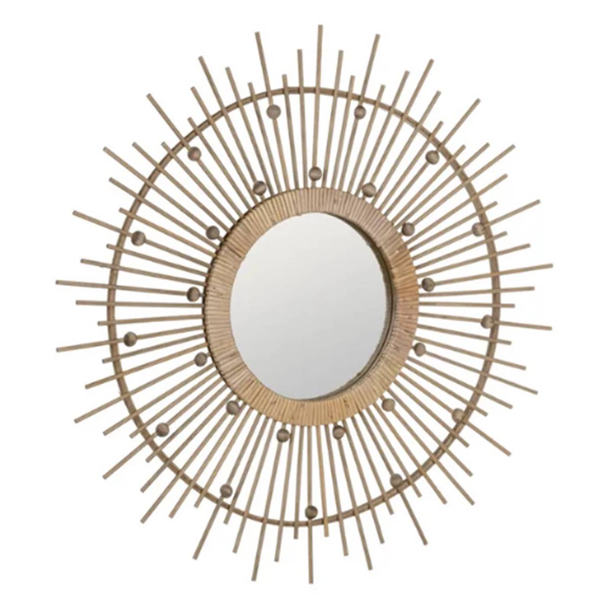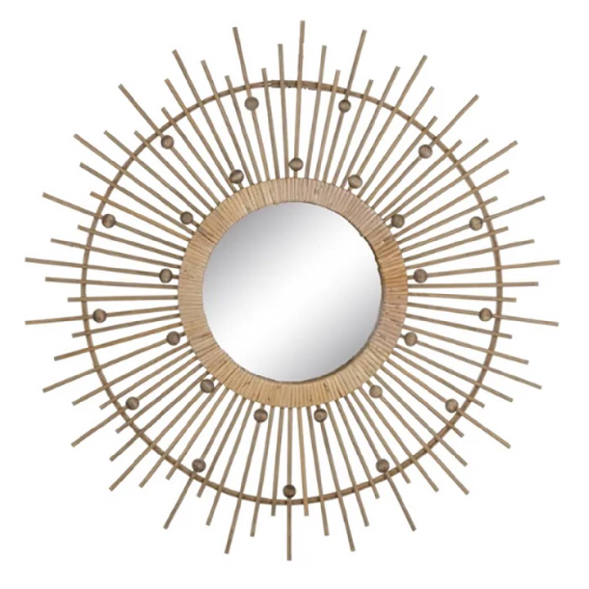 Ange Miroir en bambou couleur naturelle, au style chaleureux et bohème, parfait pour apporter une touche authentique à votre intérieur. Dimensions : 70 × 3 × 70 cm. Poids : 2 kg.