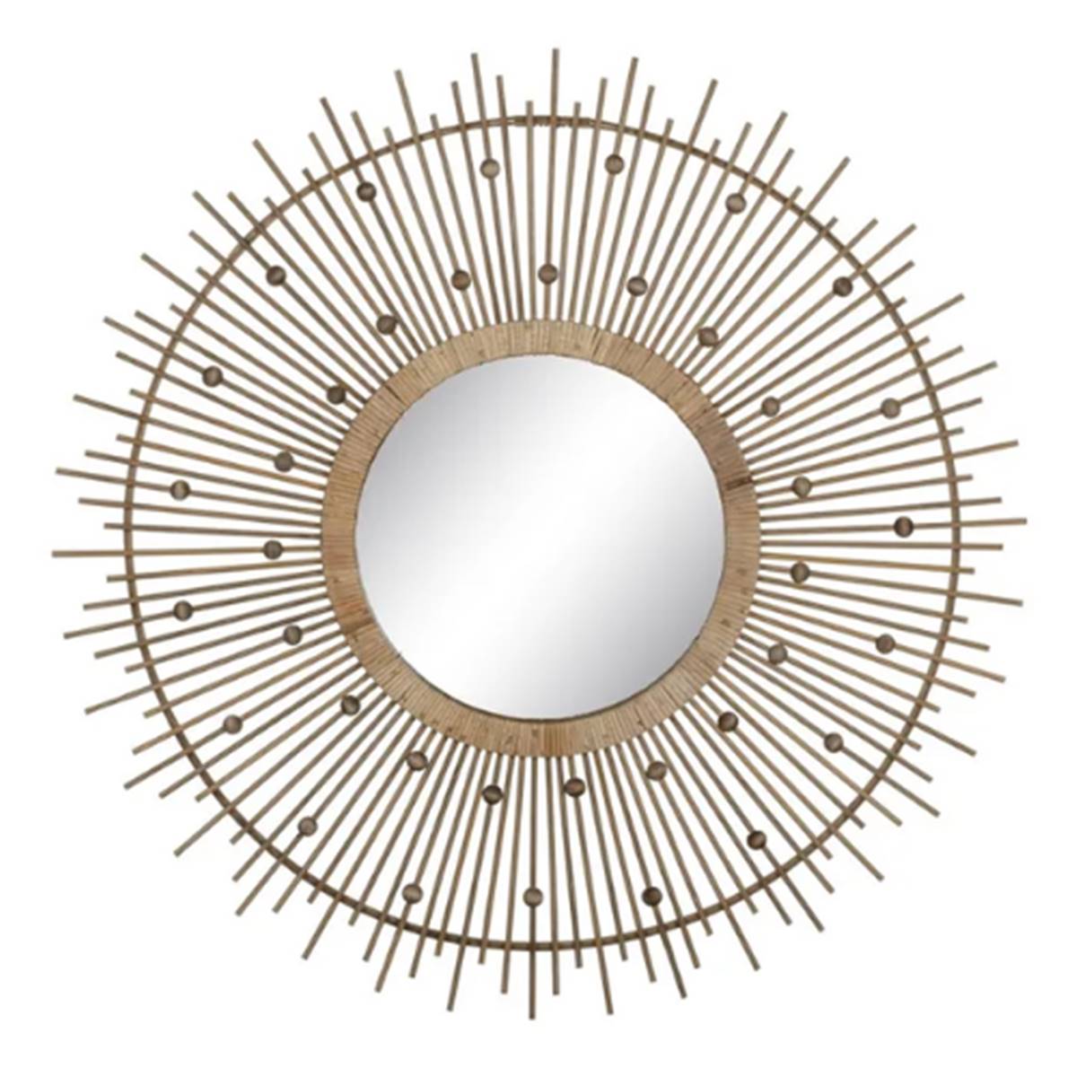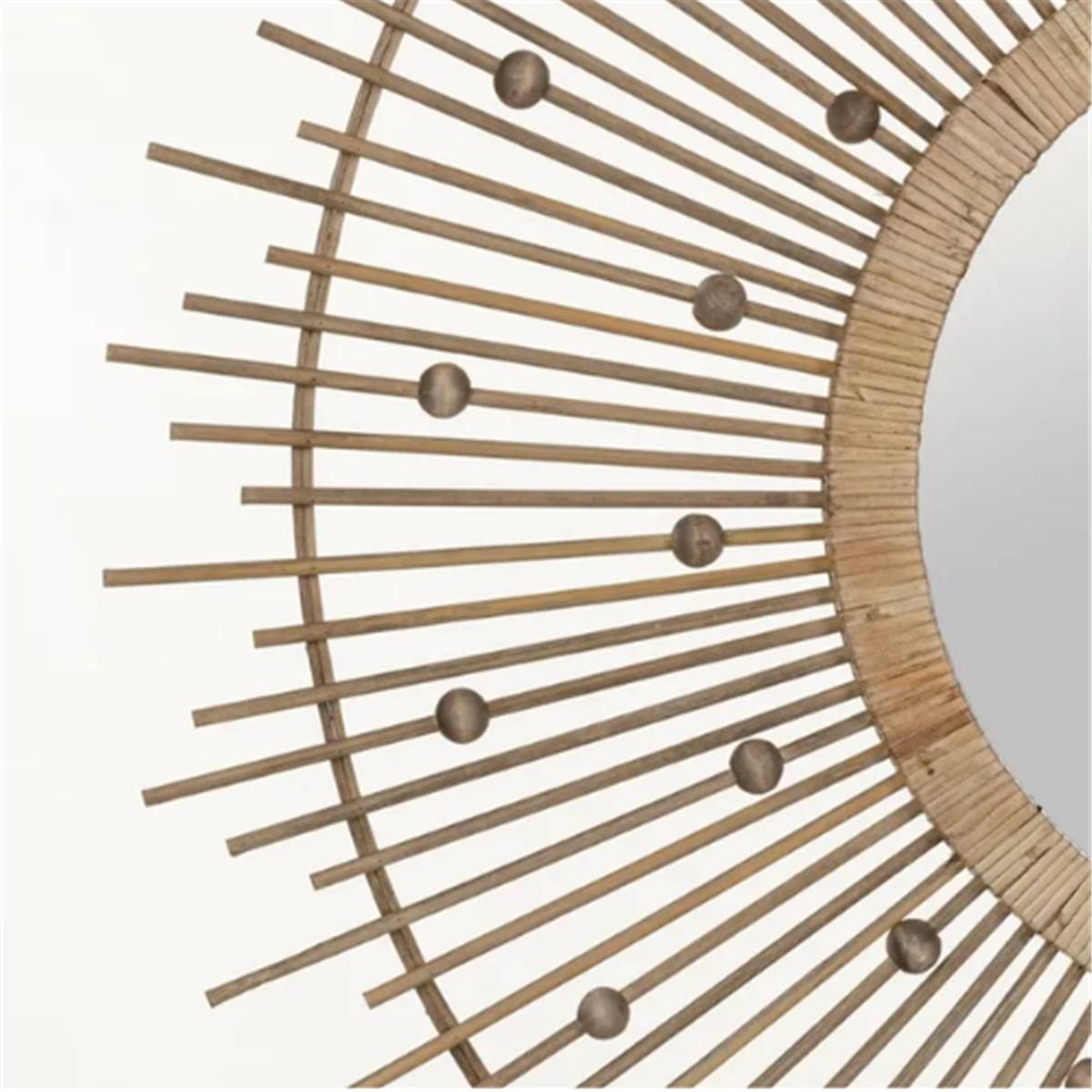 Ange Miroir en bambou couleur naturelle, au style chaleureux et bohème, parfait pour apporter une touche authentique à votre intérieur. Dimensions : 90× 3 × 90cm. Poids : 2.7kg.