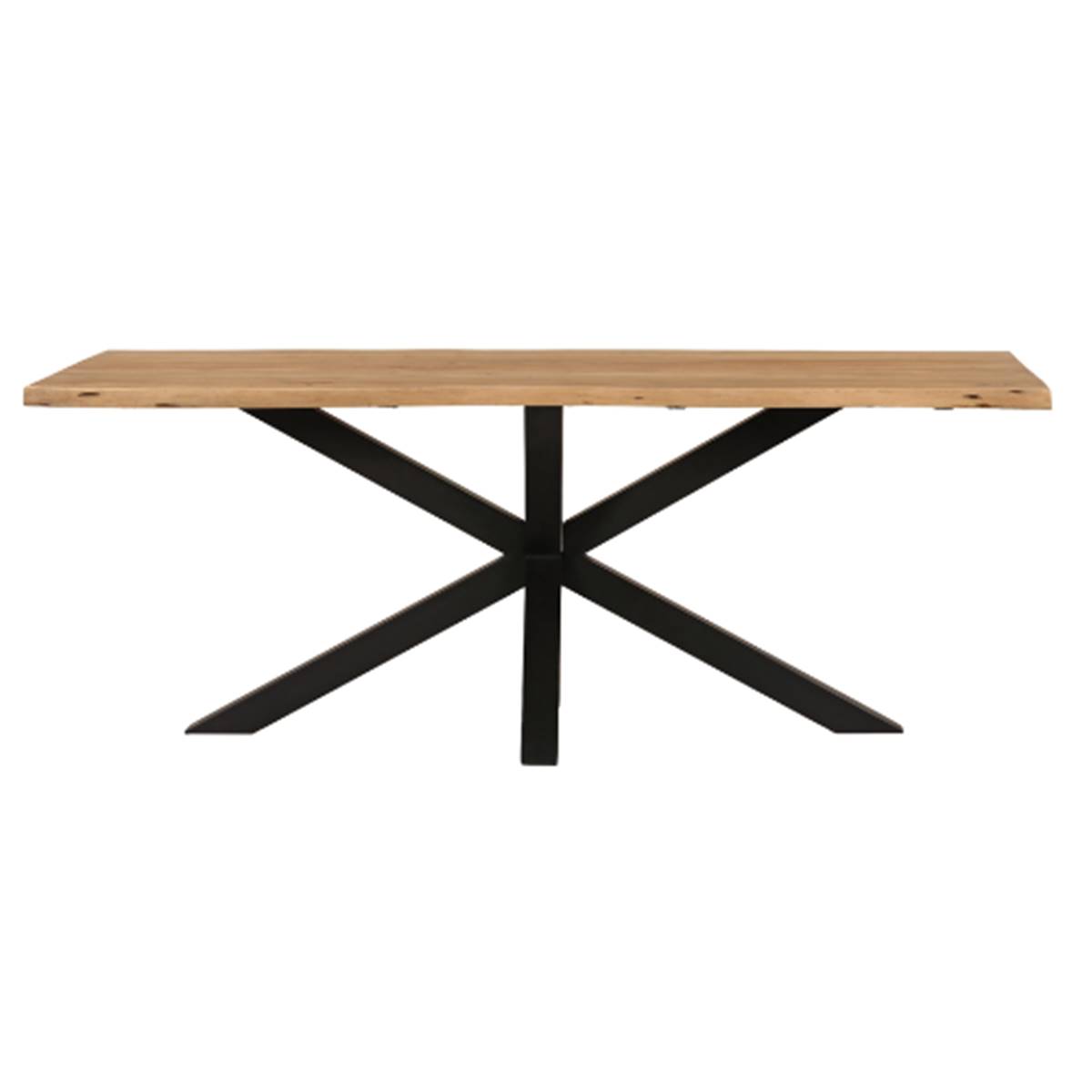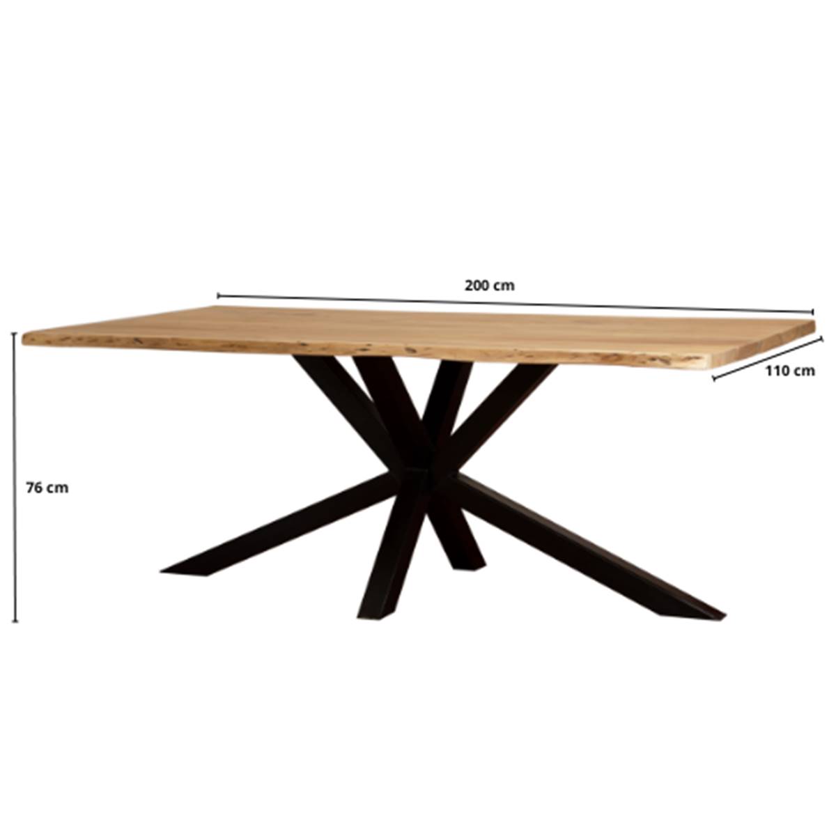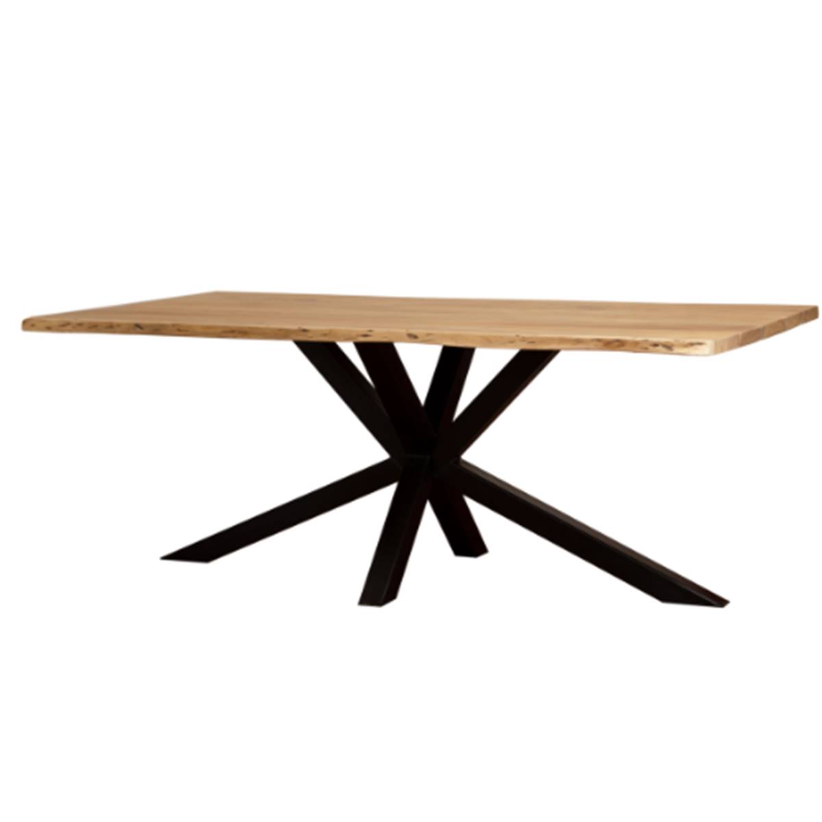 Live table à manger en bois d'acacia bords irréguliers pieds métal 200cm