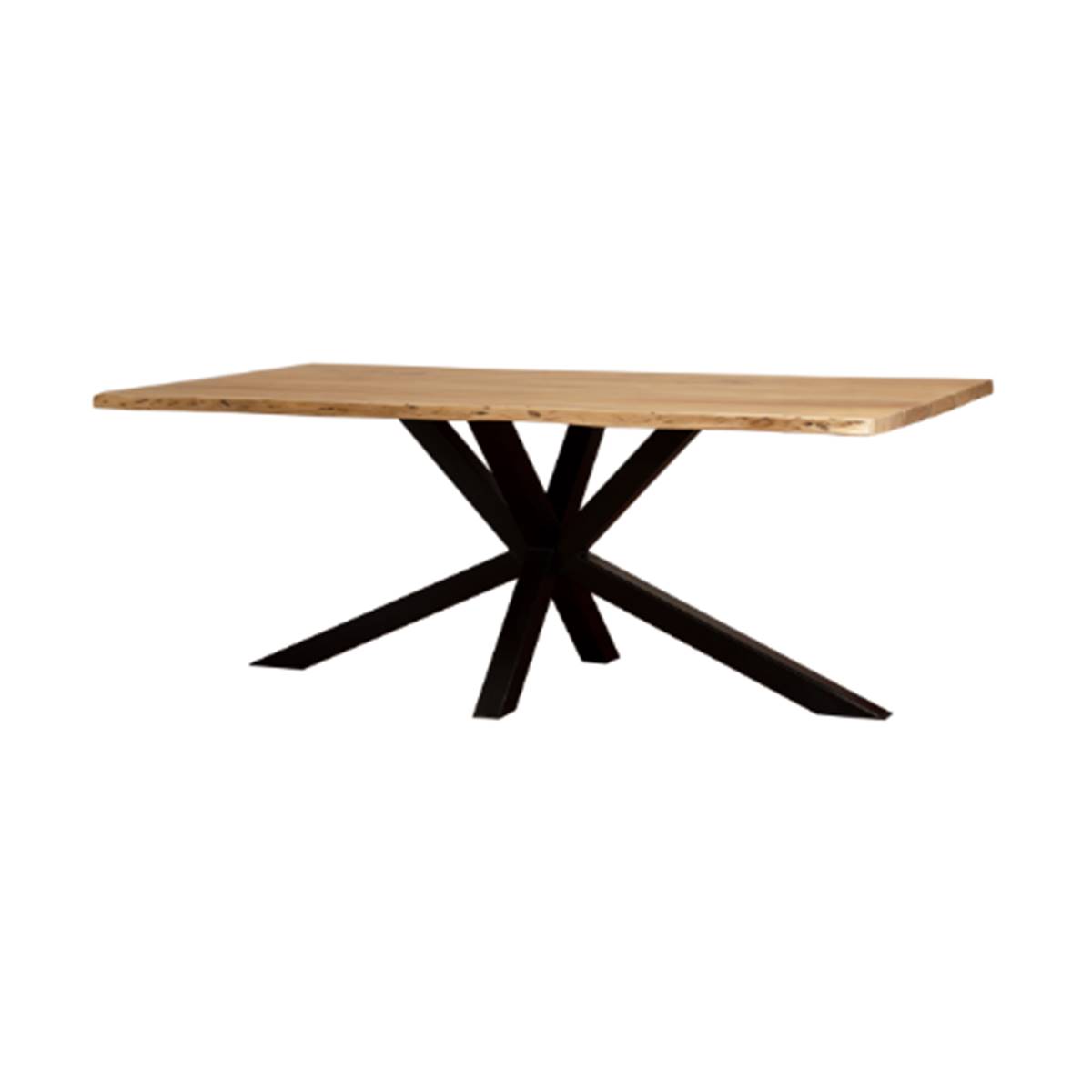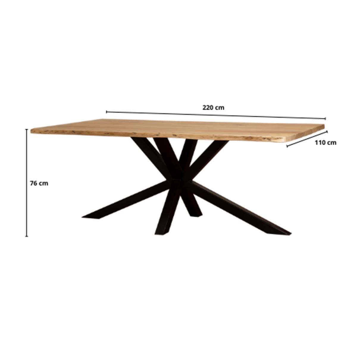 Live table à manger en bois d'acacia bords irréguliers pieds métal 220cm