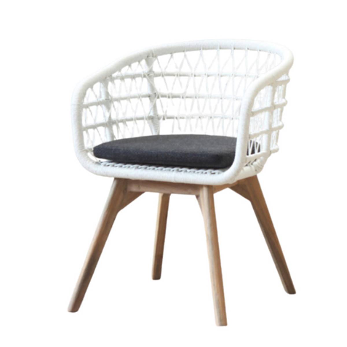 Rattan chaise extérieur en rotin synthétique blanc et bois de teck