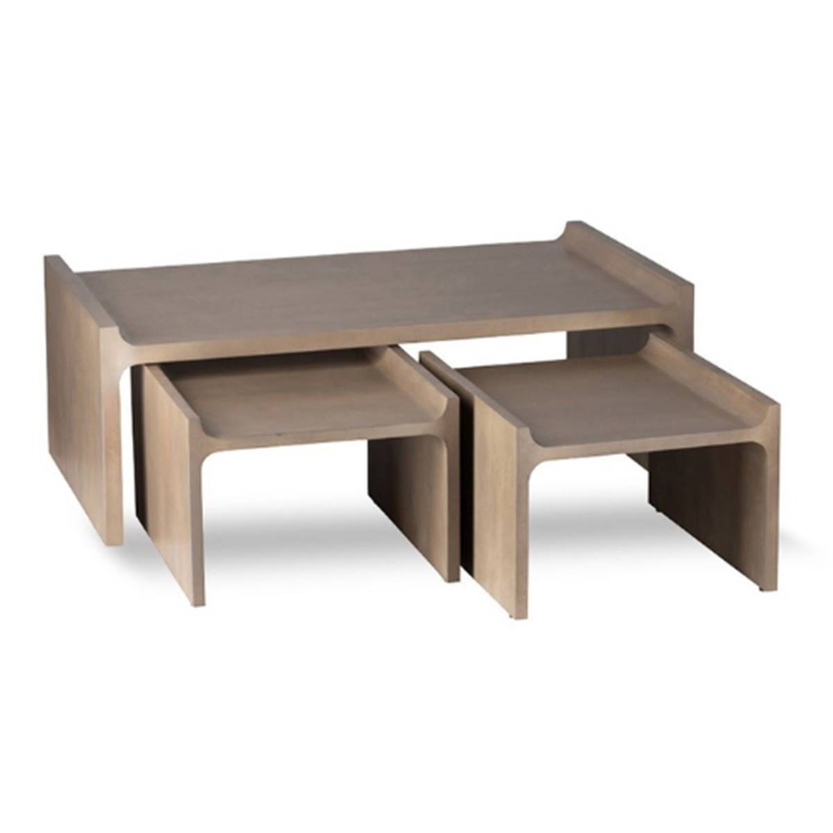 Conill lot de 3 tables basses en bois de manguier naturel blanc