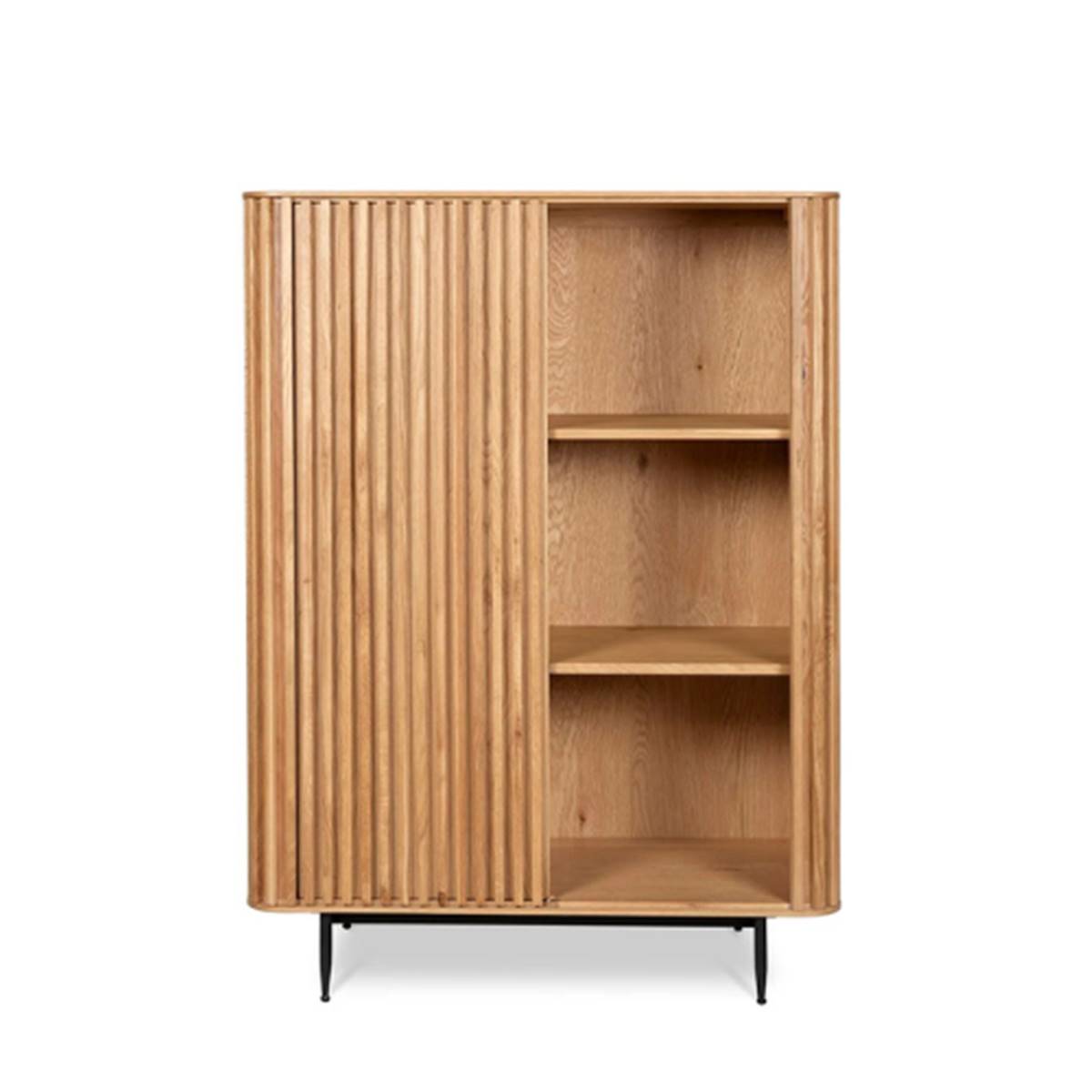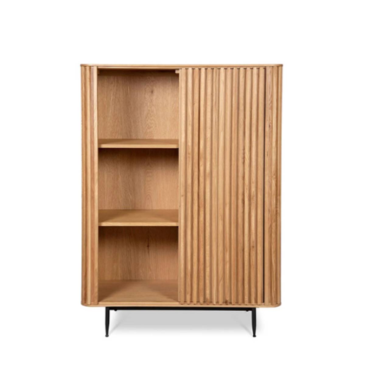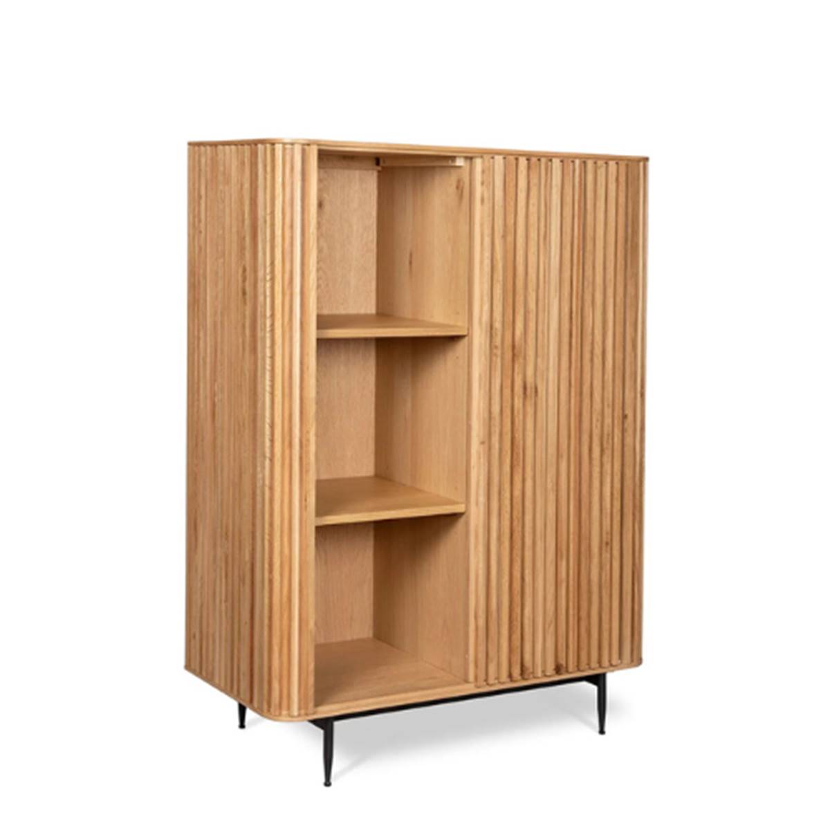Le meuble haut 1 porte coulissante Linea en chêne naturel et métal combine design élégant et rangement fonctionnel, parfait pour apporter une touche contemporaine et raffinée à votre intérieur. Il offre de nombreuses niches de rangement tout en restant visuellement léger et stylé.