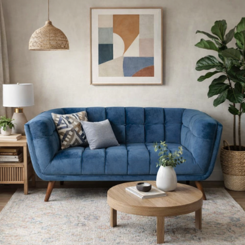 Le canapé Beryl 2 places en velours bleu est une pièce centrale à la fois esthétique et confortable. Son revêtement velouté et son design soigné en font un meuble parfait pour enrichir votre salon et créer un espace de détente accueillant.