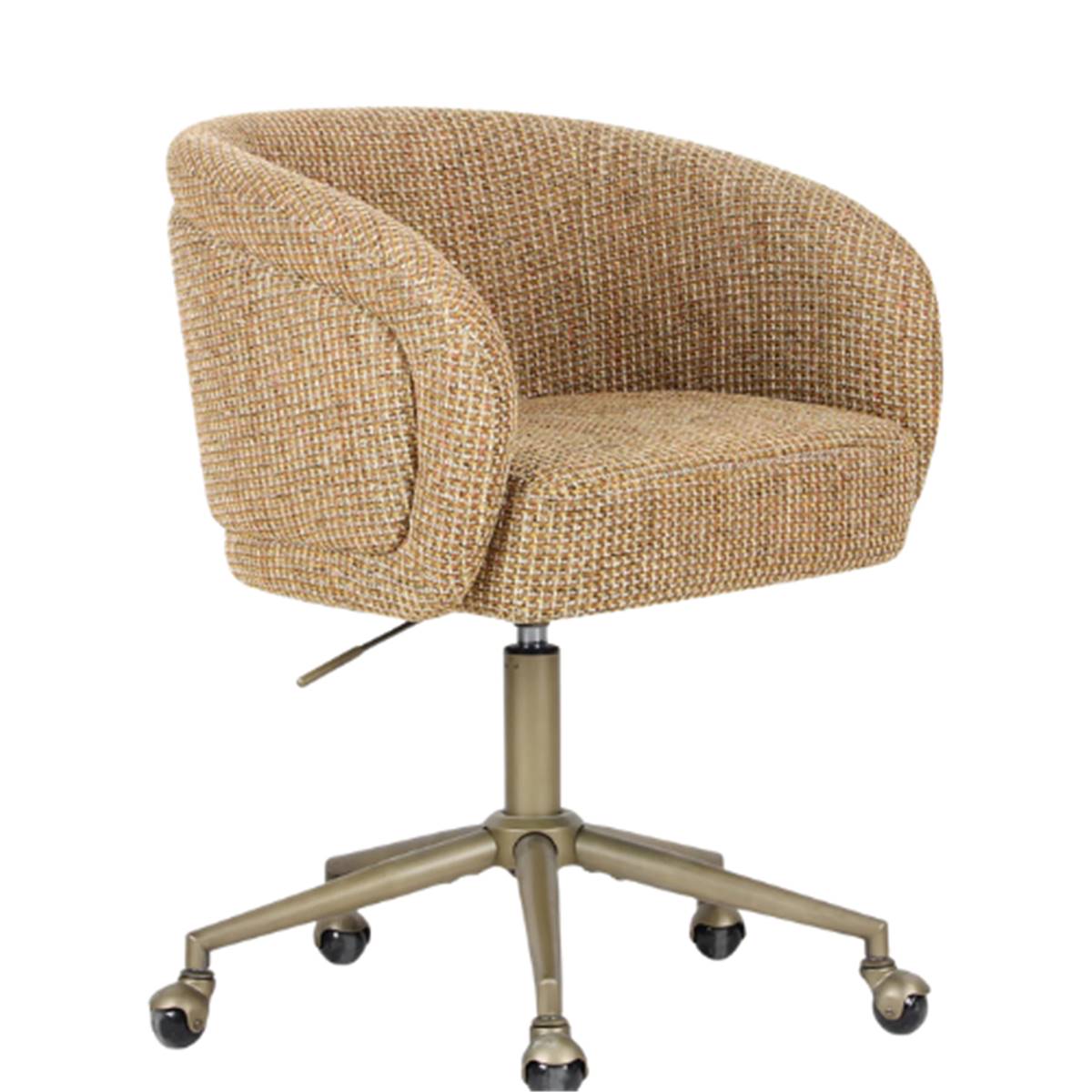 Lucy chaise de bureau à roulettes rotative en tissu tweed jaune et laiton
