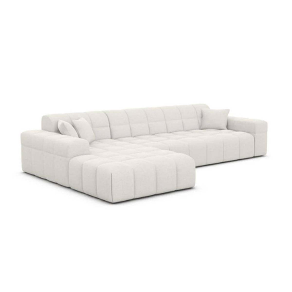 Lodce canapé d'angle gauche en tissu texturé blanc