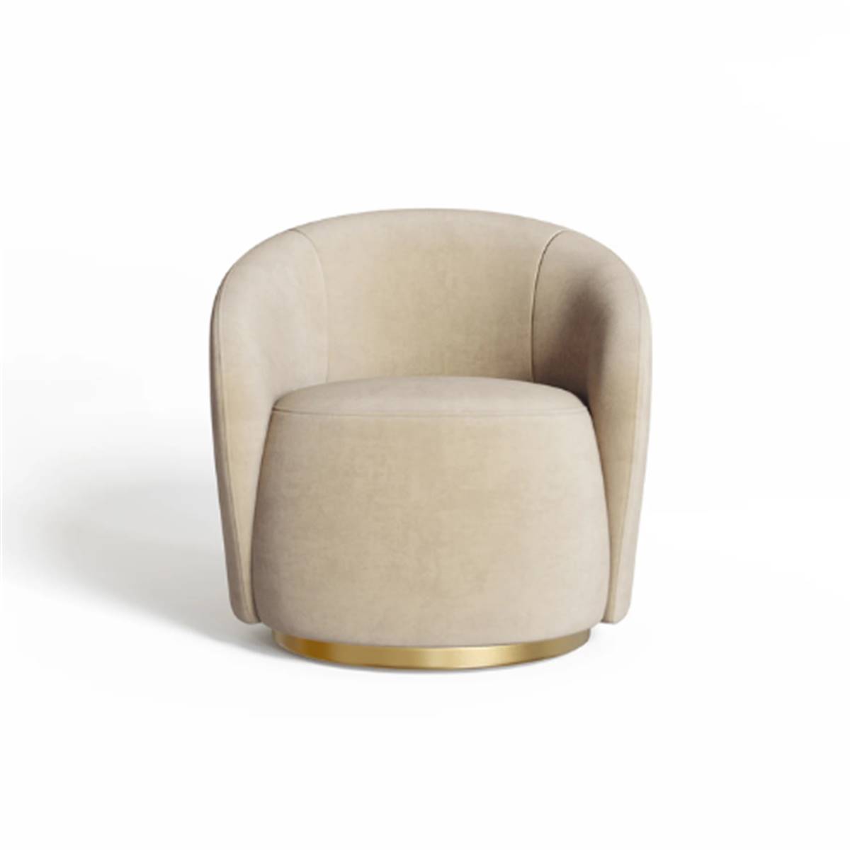 Jade fauteuil pivotant en velours taupe clair pied doré