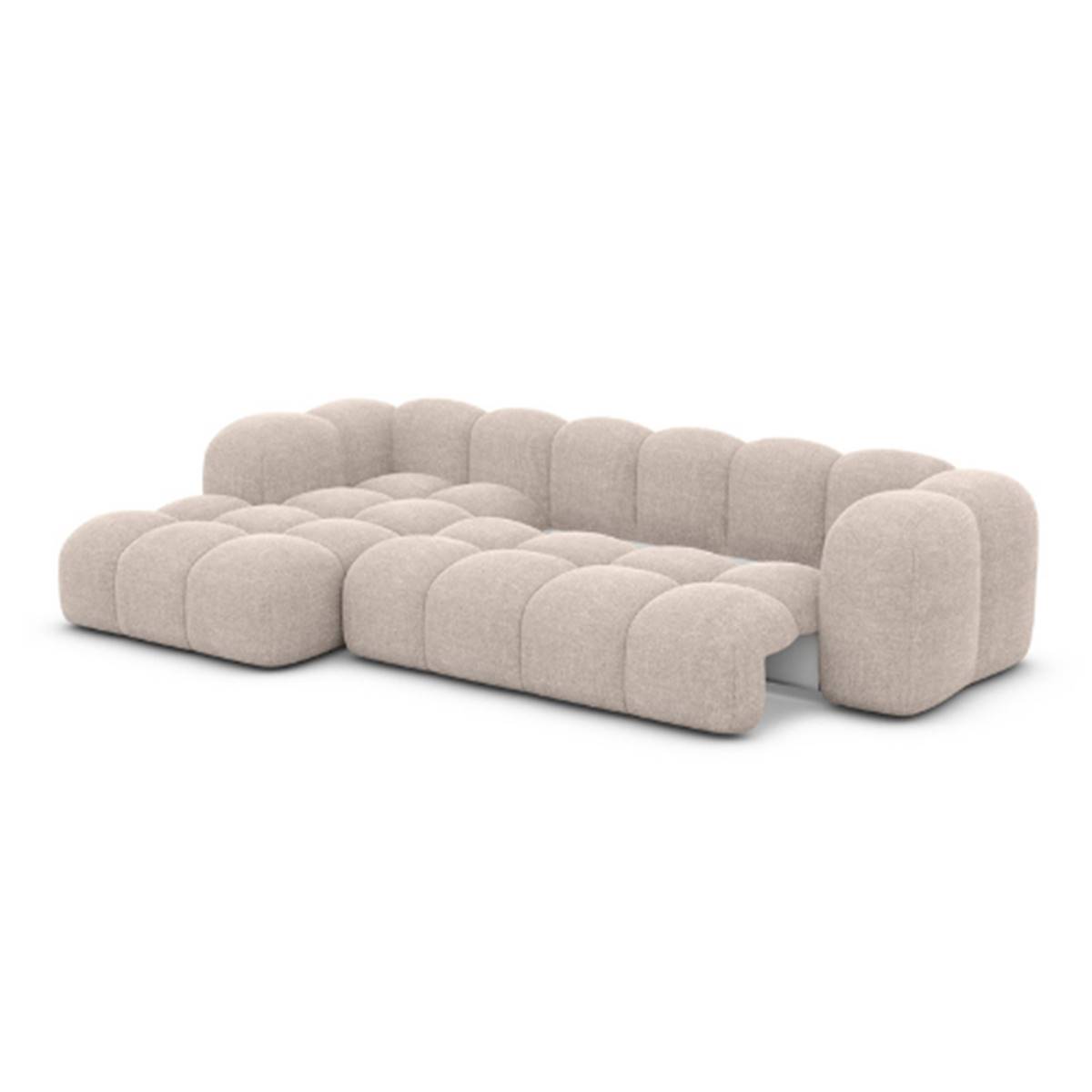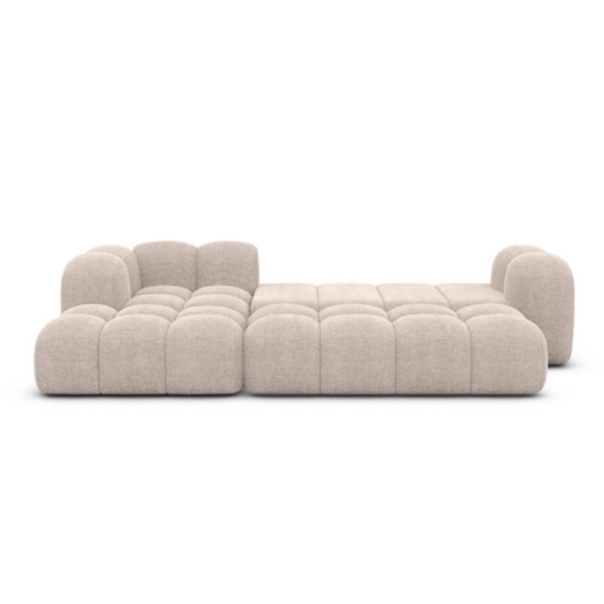 Le canapé d’angle gauche Cotton en tissu texturé beige apporte une touche douce et contemporaine à votre salon. Sa texture bouclée et son assise généreuse offrent un confort enveloppant, tandis que sa fonction convertible permet d’accueillir facilement des invités.