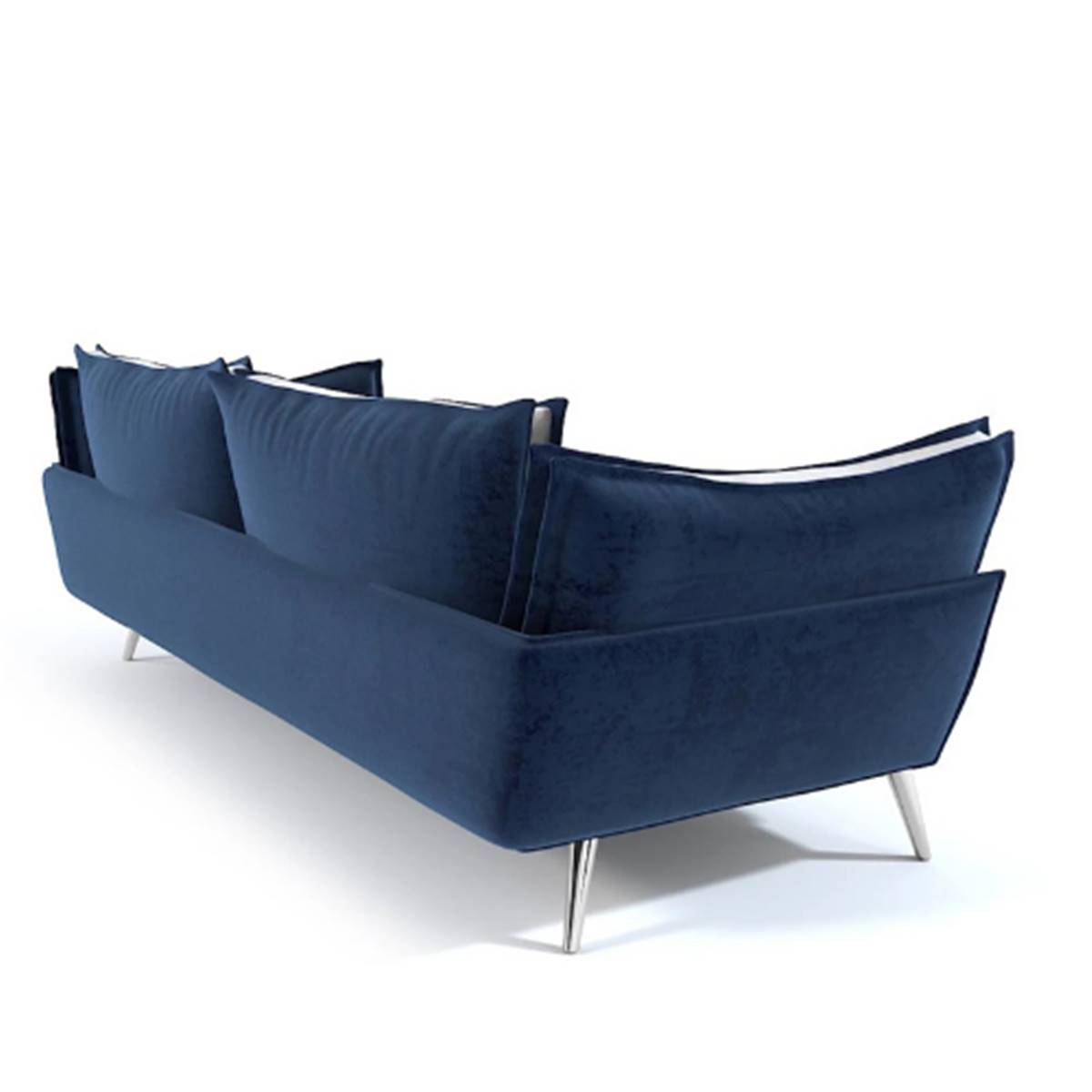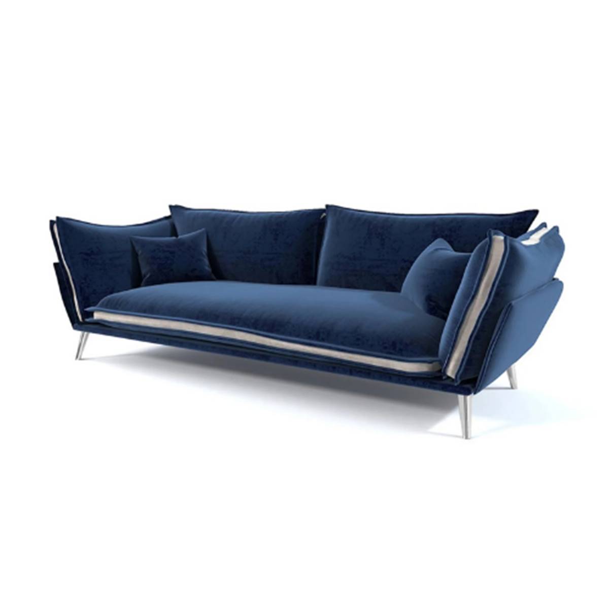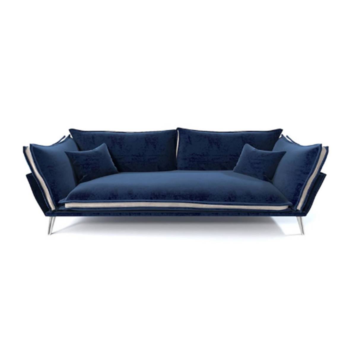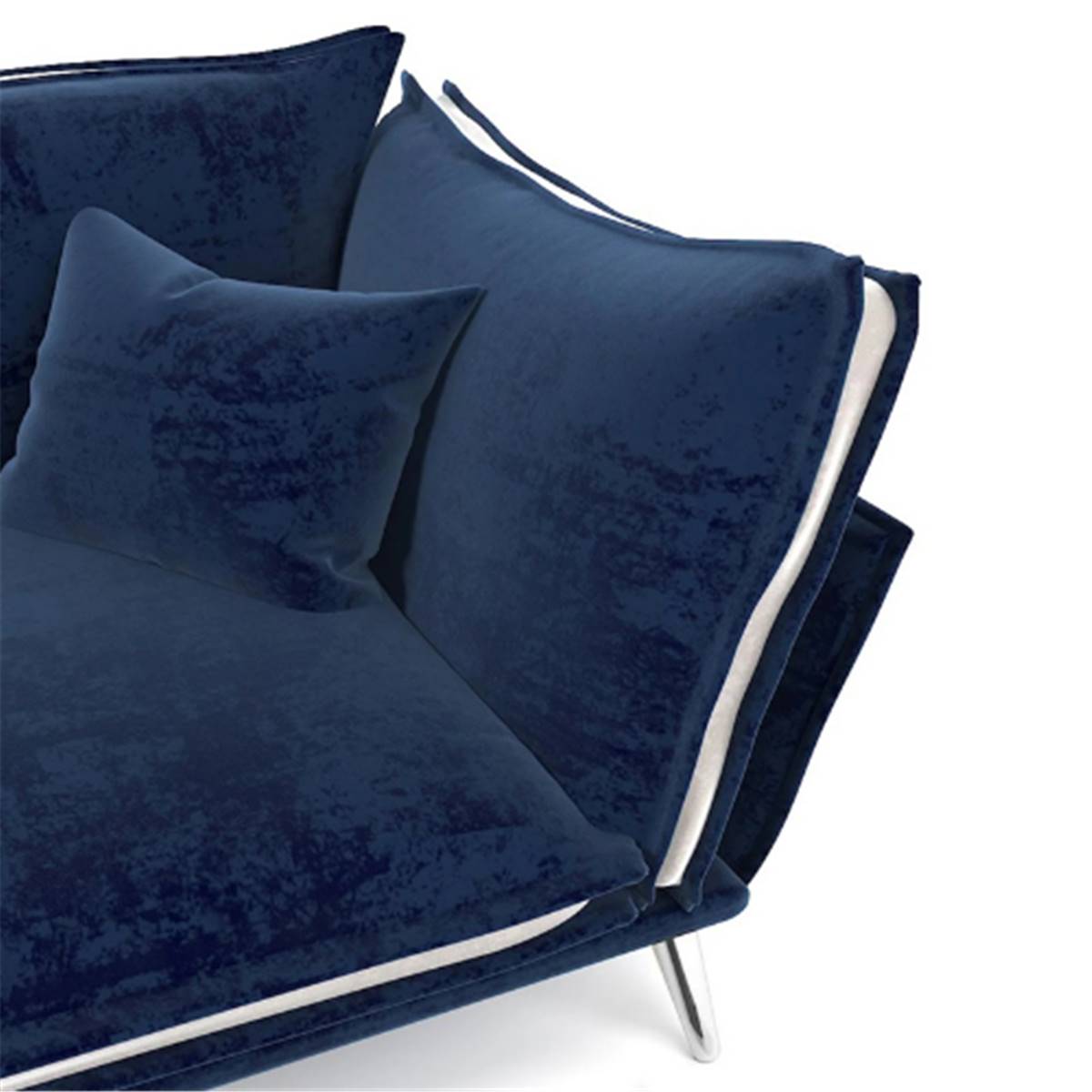 Laura canapé 3 places en velours bleu foncé et sable pieds argentés