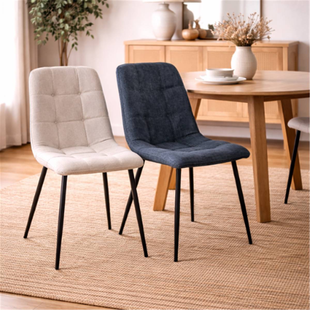 La chaise Nancy matelassée bleue en tissu grosse maille et pieds métal allie confort, texture et design contemporain. Son revêtement en tissu à grosse maille bleu offre une assise douce et enveloppante, tandis que le matelassage ajoute une touche de sophistication tout en garantissant un confort optimal. La structure avec pieds en métal renforce la stabilité du siège et souligne un style moderne et élégant. Cette chaise polyvalente s’adapte parfaitement à une salle à manger, un espace bureau ou un coin repas.