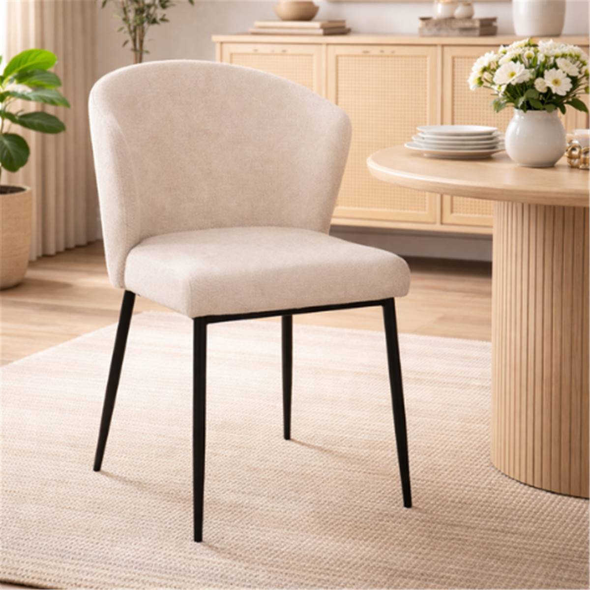 La chaise Bardo dossier incurvé en tissu beige et pieds métal combine confort et style moderne pour votre salle à manger ou espace repas. Son assise et son dossier rembourrés, recouverts d’un tissu polyester de teinte beige, offrent un confort agréable au quotidien. Sa structure en métal assure stabilité et robustesse, tandis que son dossier incurvé épouse naturellement la forme du dos. Son design contemporain permet de l’intégrer facilement dans différents styles d’intérieur.