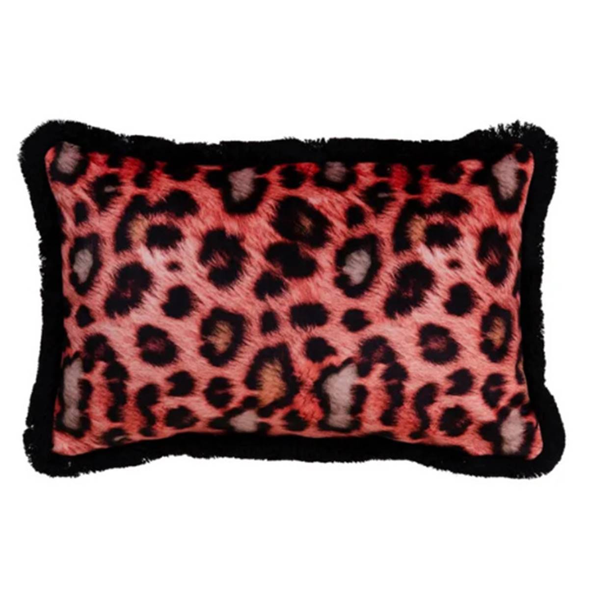 Lynra coussin rectangulaire léopard velours orange et noir 45x30cm