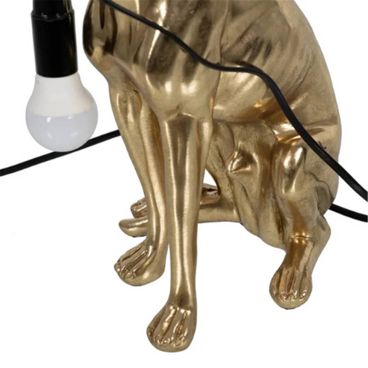 Doggy lampe de table en résine chien lévrier doré câble noir H36cm