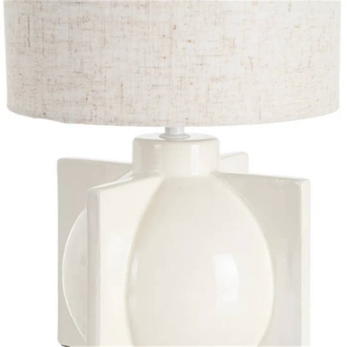 Mauna lampe de table en céramique de forme géométrique blanc et abat-jour lin