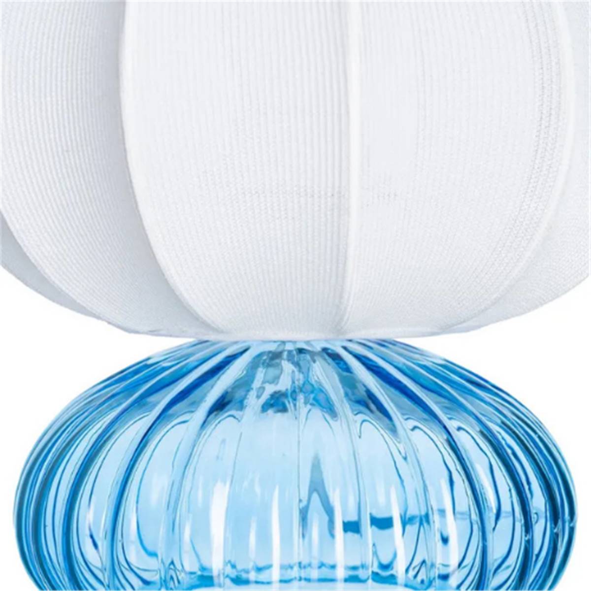 Plass lampe de table en verre unique bleu et abat-jour en tissu blanc H23cm