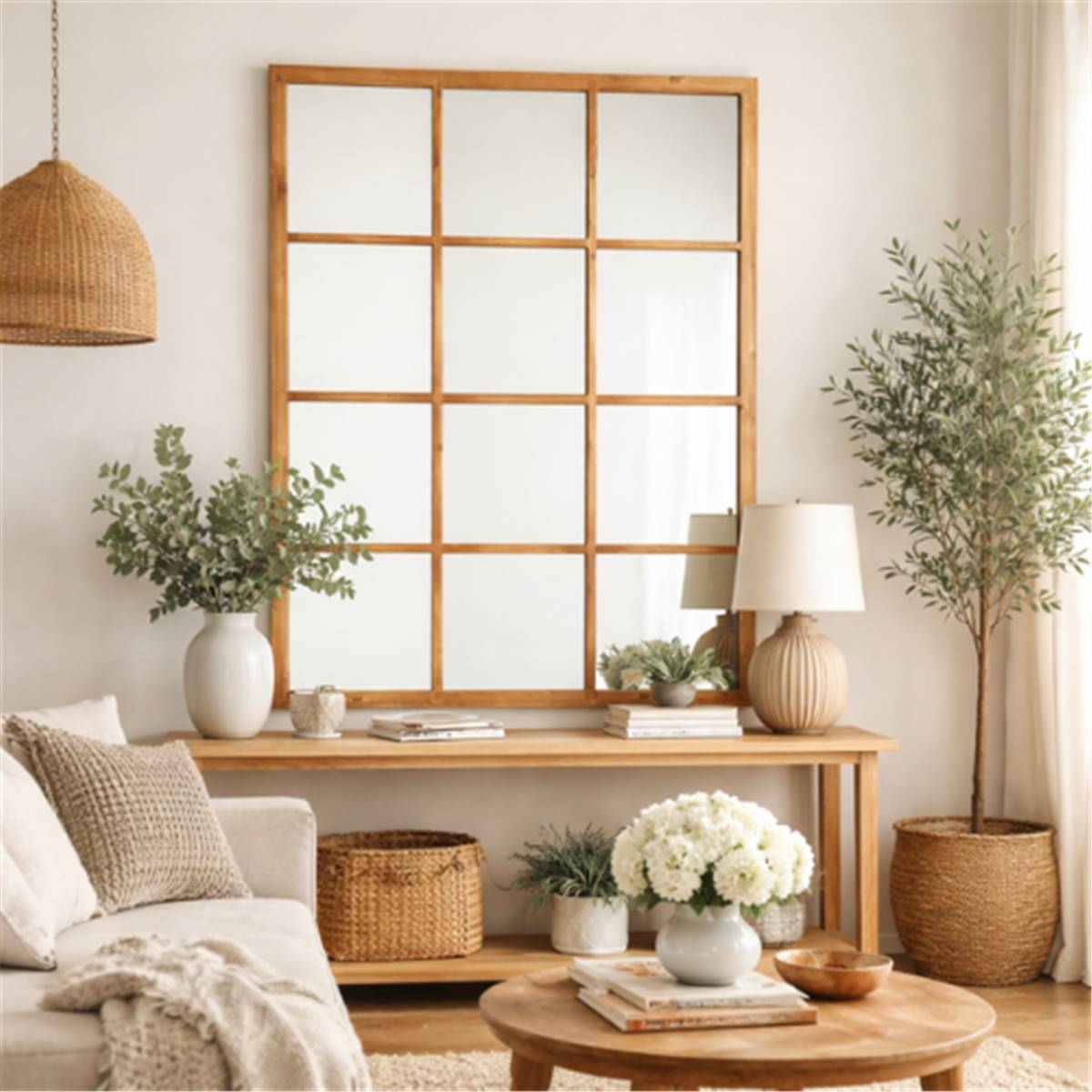 Le miroir Antic type fenêtre industrielle en bois naturel 12 carreaux séduit par son design inspiré des verrières d’atelier qui apporte une touche authentique et chaleureuse à votre intérieur. Sa structure en bois naturel divisée en 12 carreaux crée un effet visuel structuré et élégant, tout en conservant un rendu plus doux et naturel que le métal. Idéal dans une entrée, un salon ou une chambre, il agrandit visuellement l’espace et reflète la lumière pour apporter davantage de luminosité.