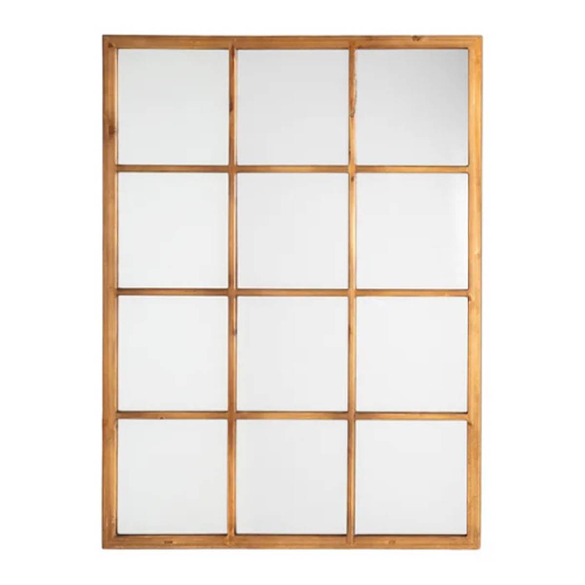 Antic miroir mural type fenêtre industrielle 12 carreaux bois naturel H120cm