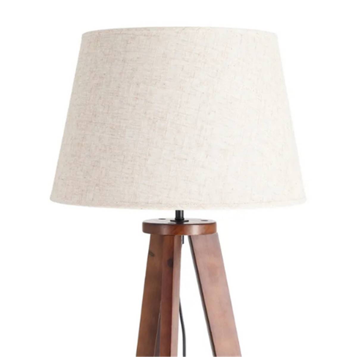 Kona lampadaire trépied en bois marron et abat-jour tissu blanc H151cm
