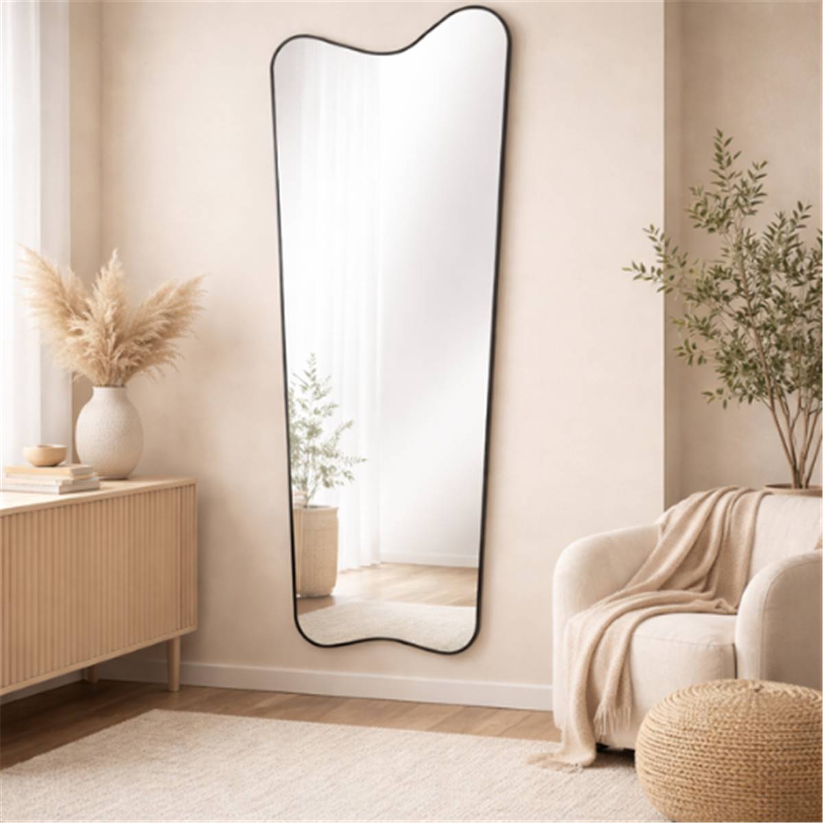Le miroir Gubi grand format organique en aluminium noir séduit par son design contemporain et sculptural qui apporte une véritable signature décorative à votre intérieur. Sa forme organique aux courbes irrégulières adoucit les lignes de votre espace tout en créant un effet visuel moderne et élégant. Son cadre en aluminium noir renforce son caractère tout en restant facile à intégrer dans une décoration contemporaine, industrielle ou minimaliste.