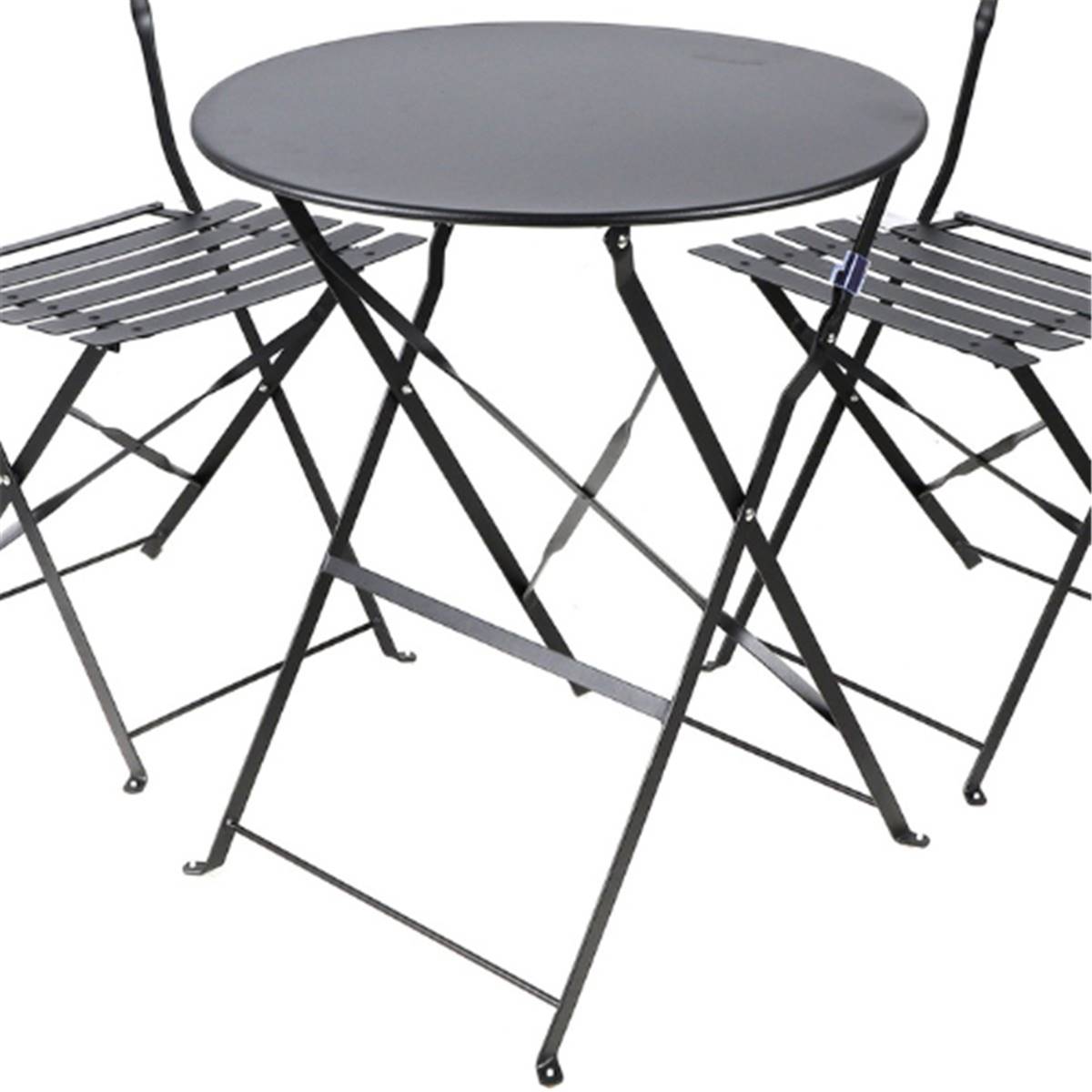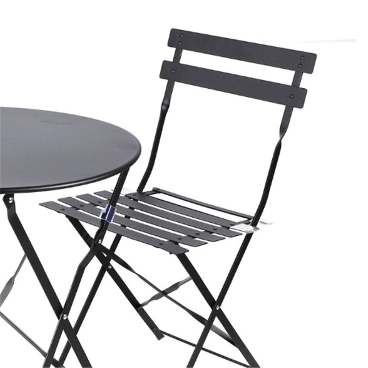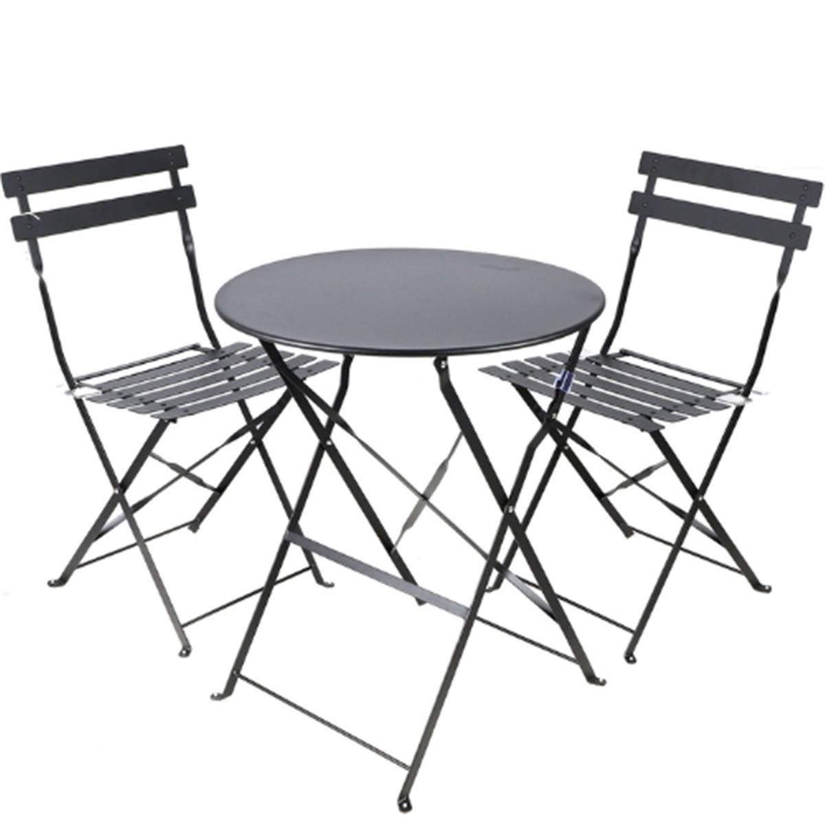 Le Mistral ensemble table et 2 chaises pliables en métal noir