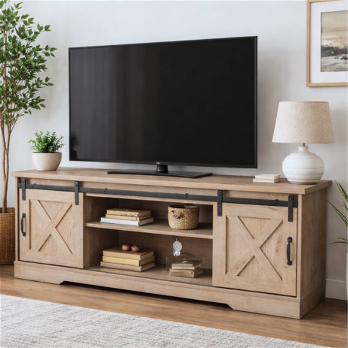 Manhattan meuble TV ranch 2 portes coulissantes bois