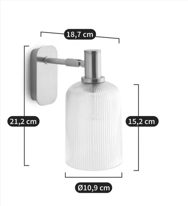 Dimensions : L.10,9 × H.21,2 × P.18,7 cm — abat-jour Ø10,9 × H.15,2 cm..