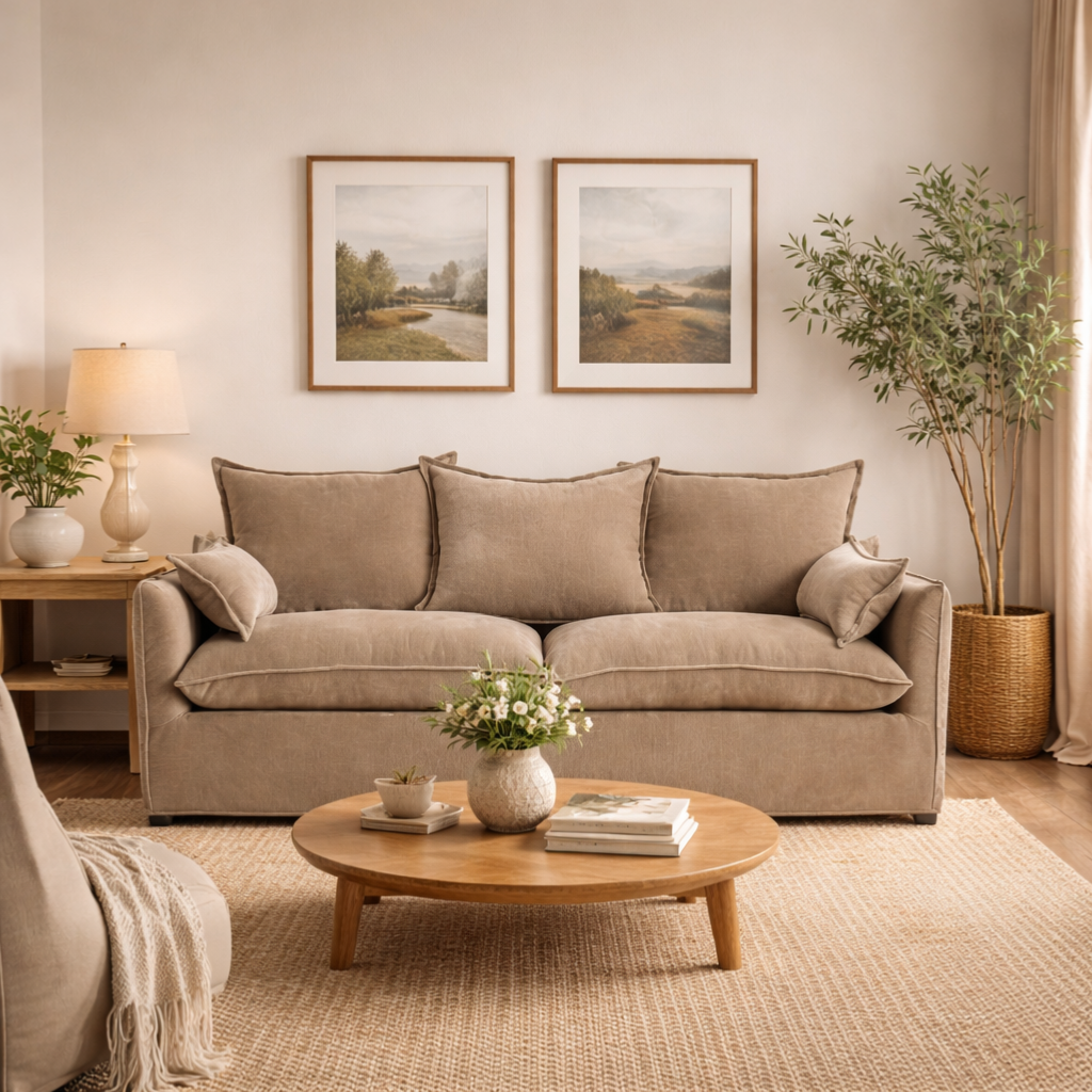 Noad canapé 4 places en lin épais marron