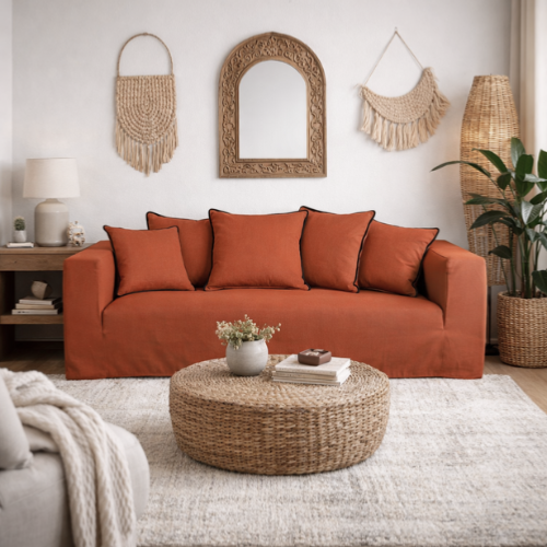 Ambiance romantique et cozy garantie avec le canapé en lin Sofia.